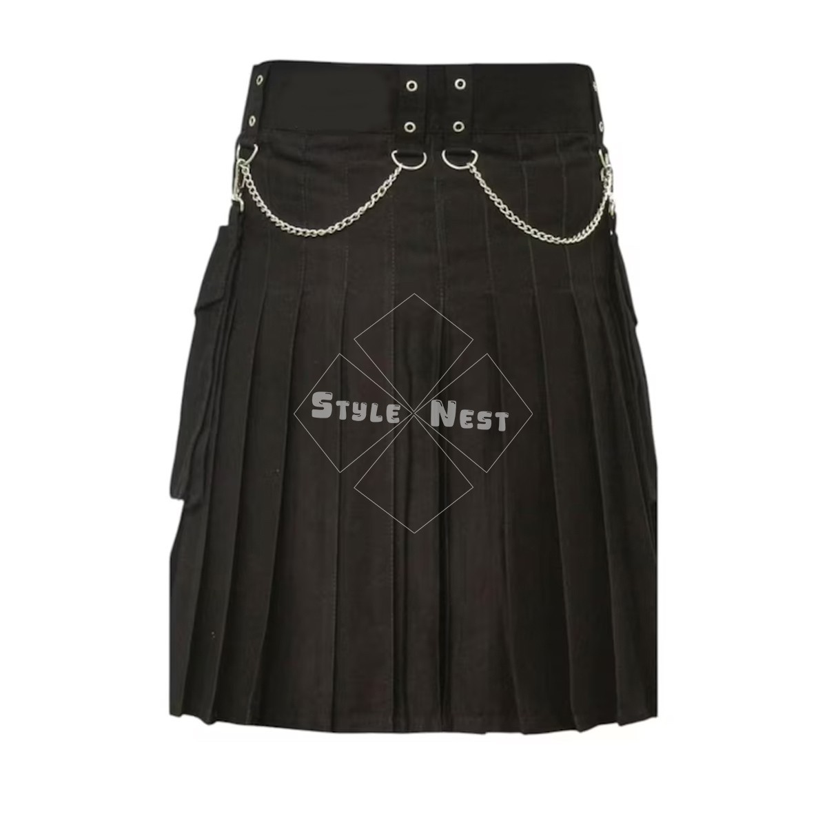 Cotton Black Gothic Utility Kilt with Chains Pockets Sizes 28-60