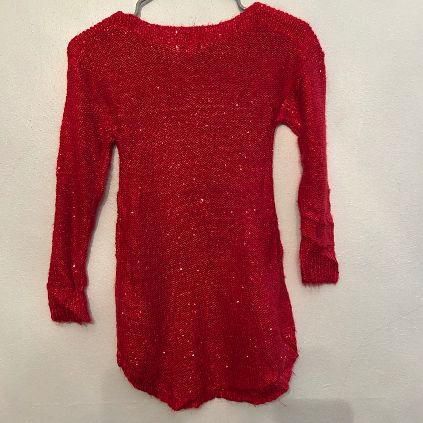 Red Sequin Knit Top Girls Long Sleeve Dressy Glitter Sparkle Sweater