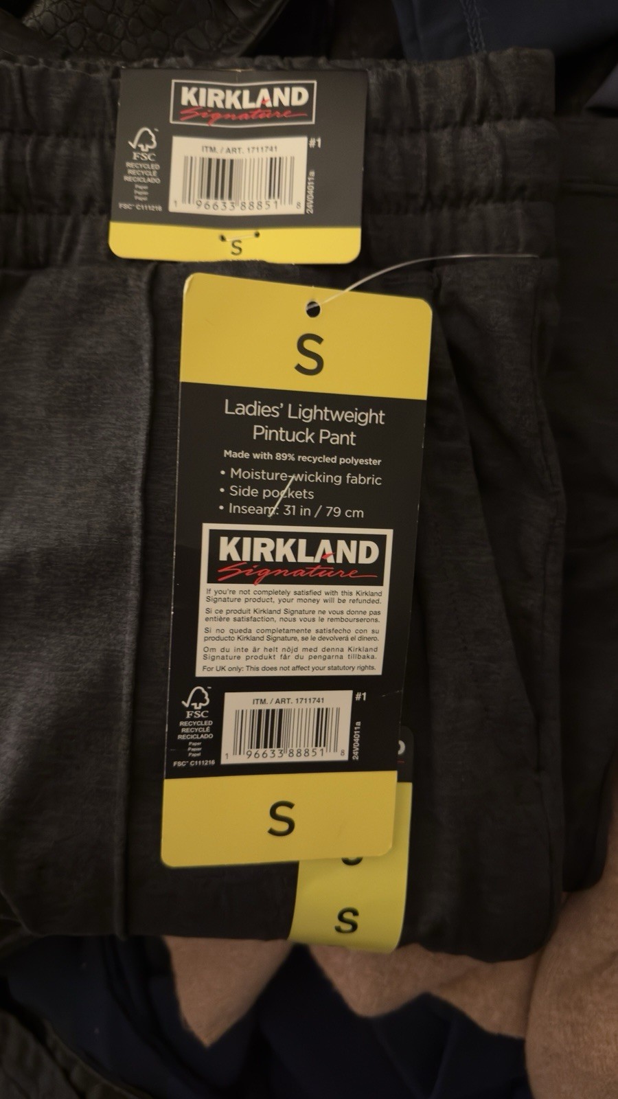 Kirkland Signature Women's Lightweight Pintuck Pant, Charcoal Black Small