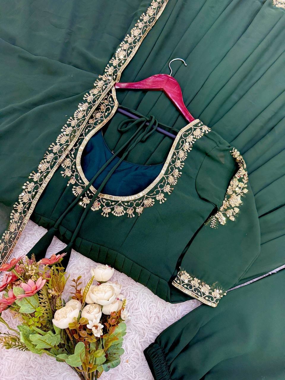 Latest Heavy Faux Georgette Green Gown Bottom With Dupatta For Festival Wear
