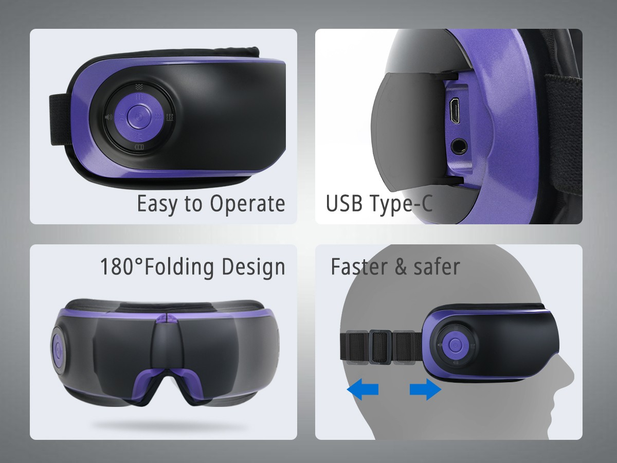 Bluetooth Eye Massager Heat Vibration Compression Rechargeable with Music Play