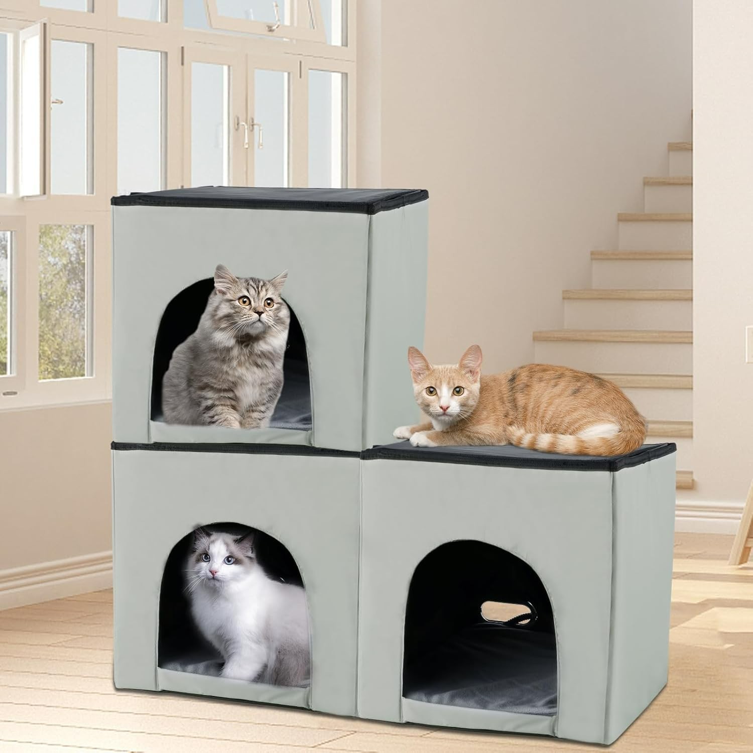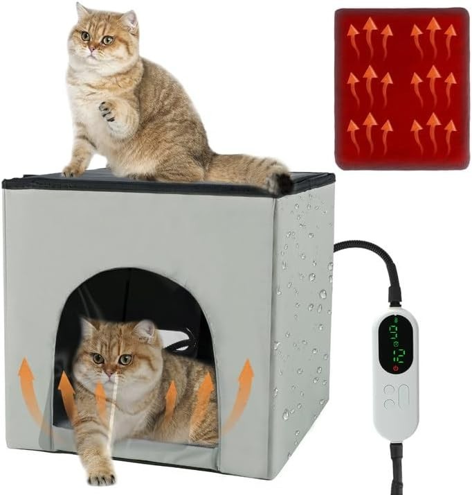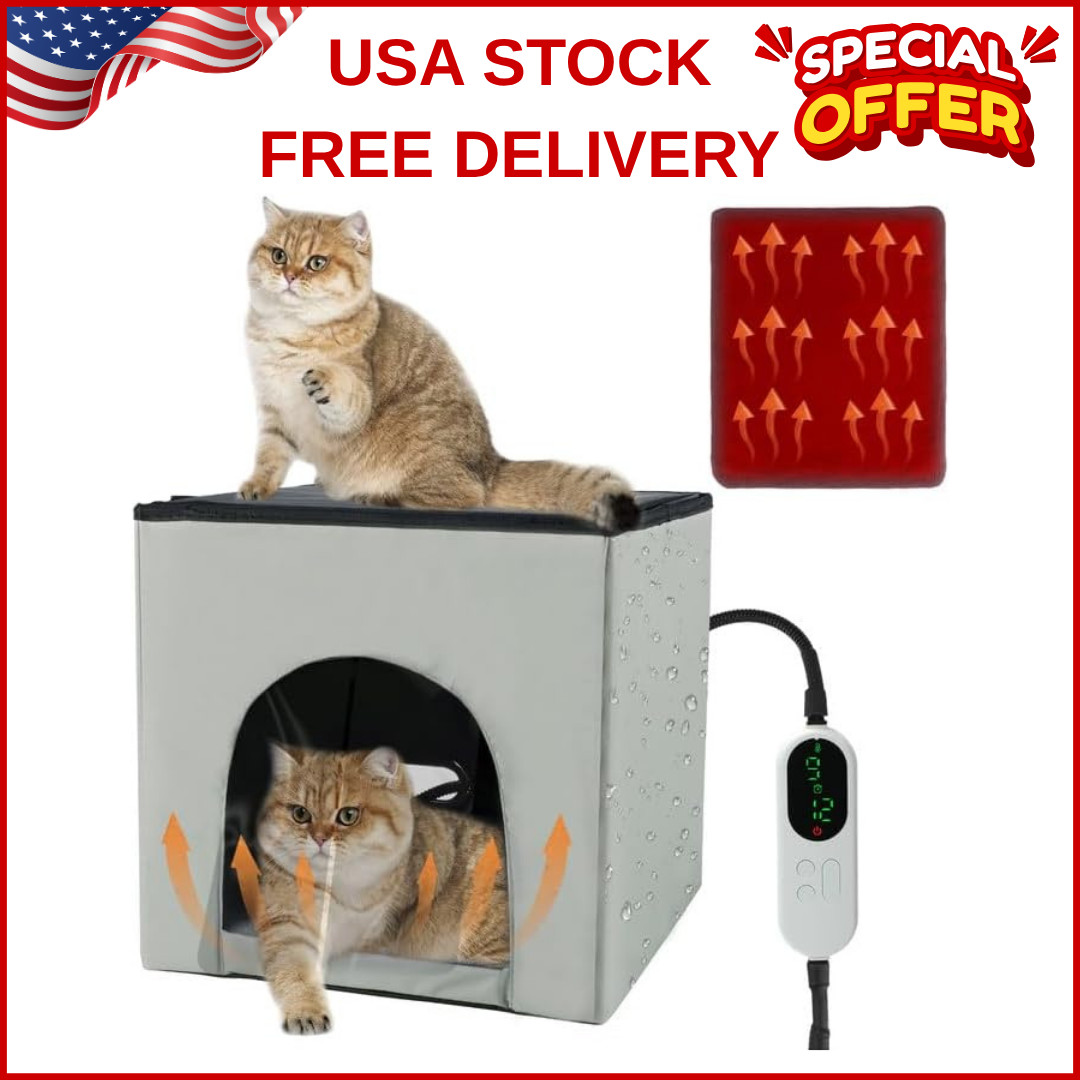 Heated Cat House for Outdoor Cats Insulated Weatherproof Shelter with Timer Temp