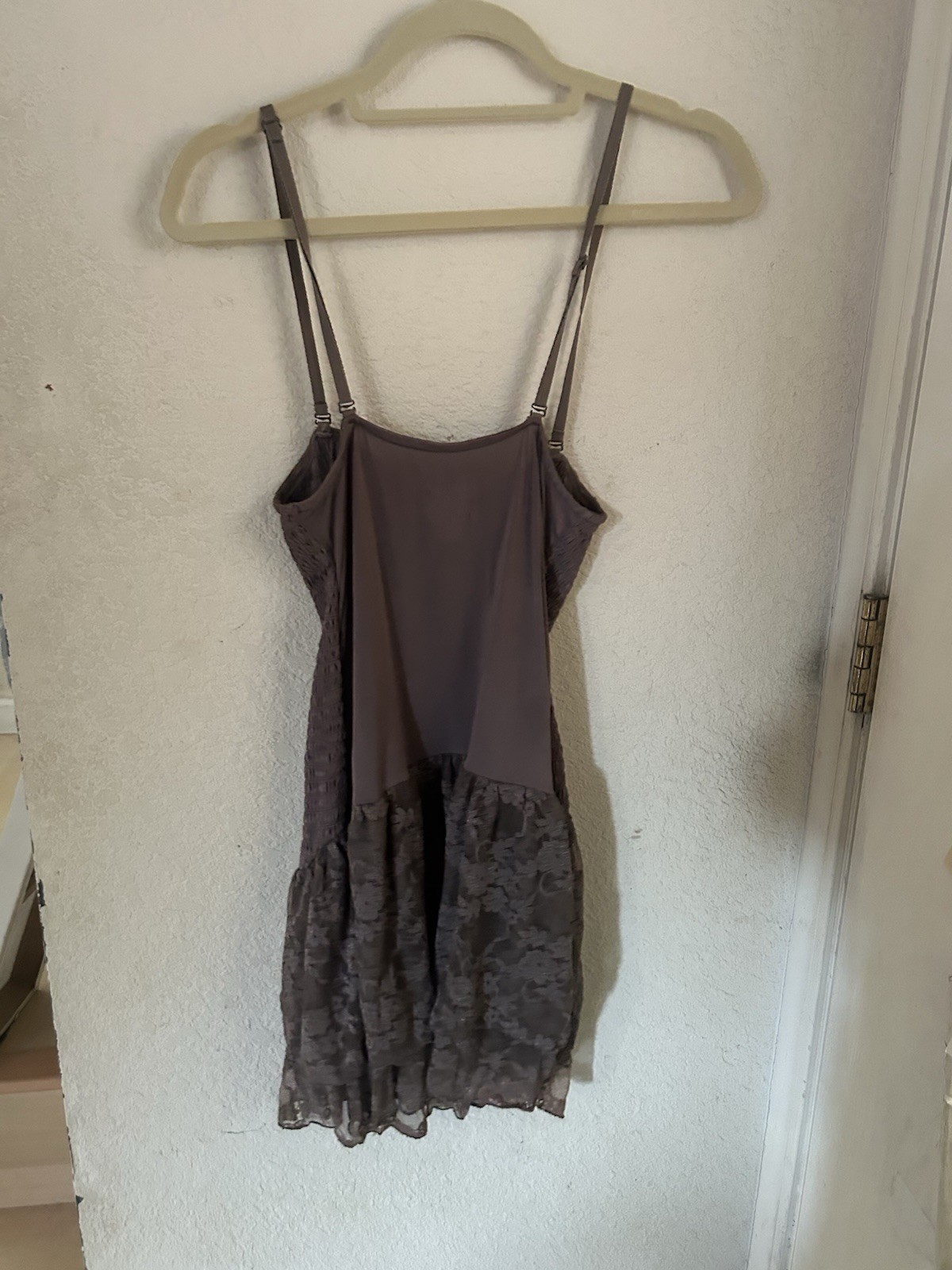 как выглядит Intimately Free People Mini Slip Smocked Sides Lacy Size Small In Brown фото