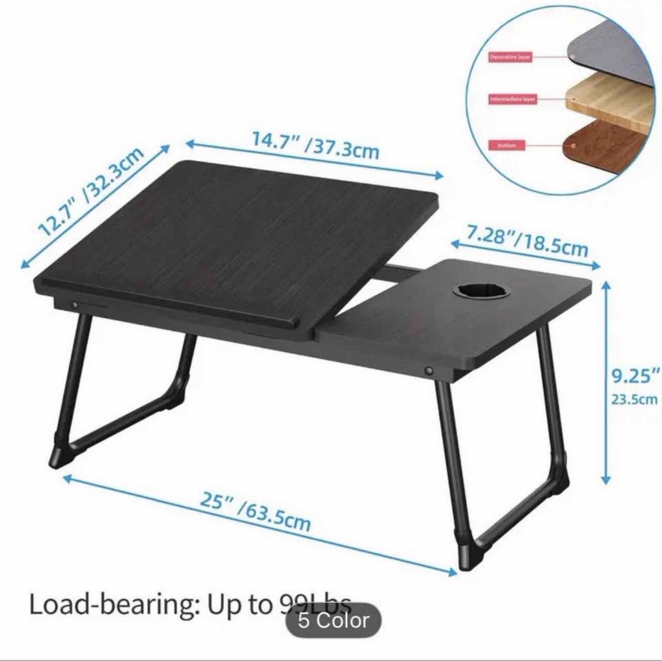 как выглядит Portable Foldable Lap Desk with Storage Drawer and Cup Holder - Laptop Bed St... фото