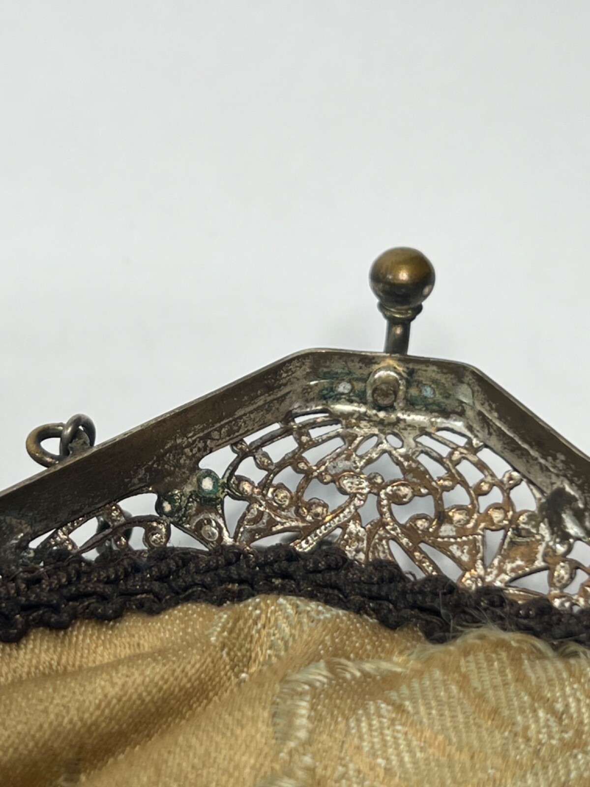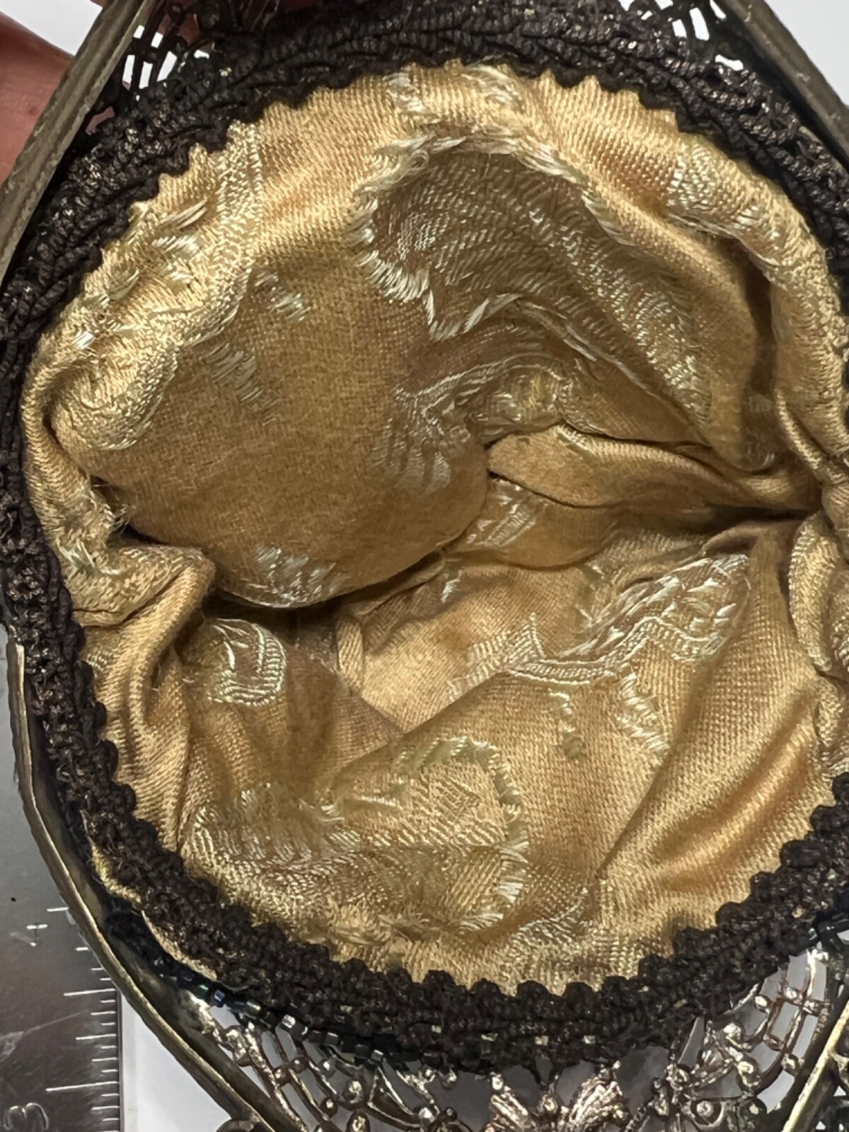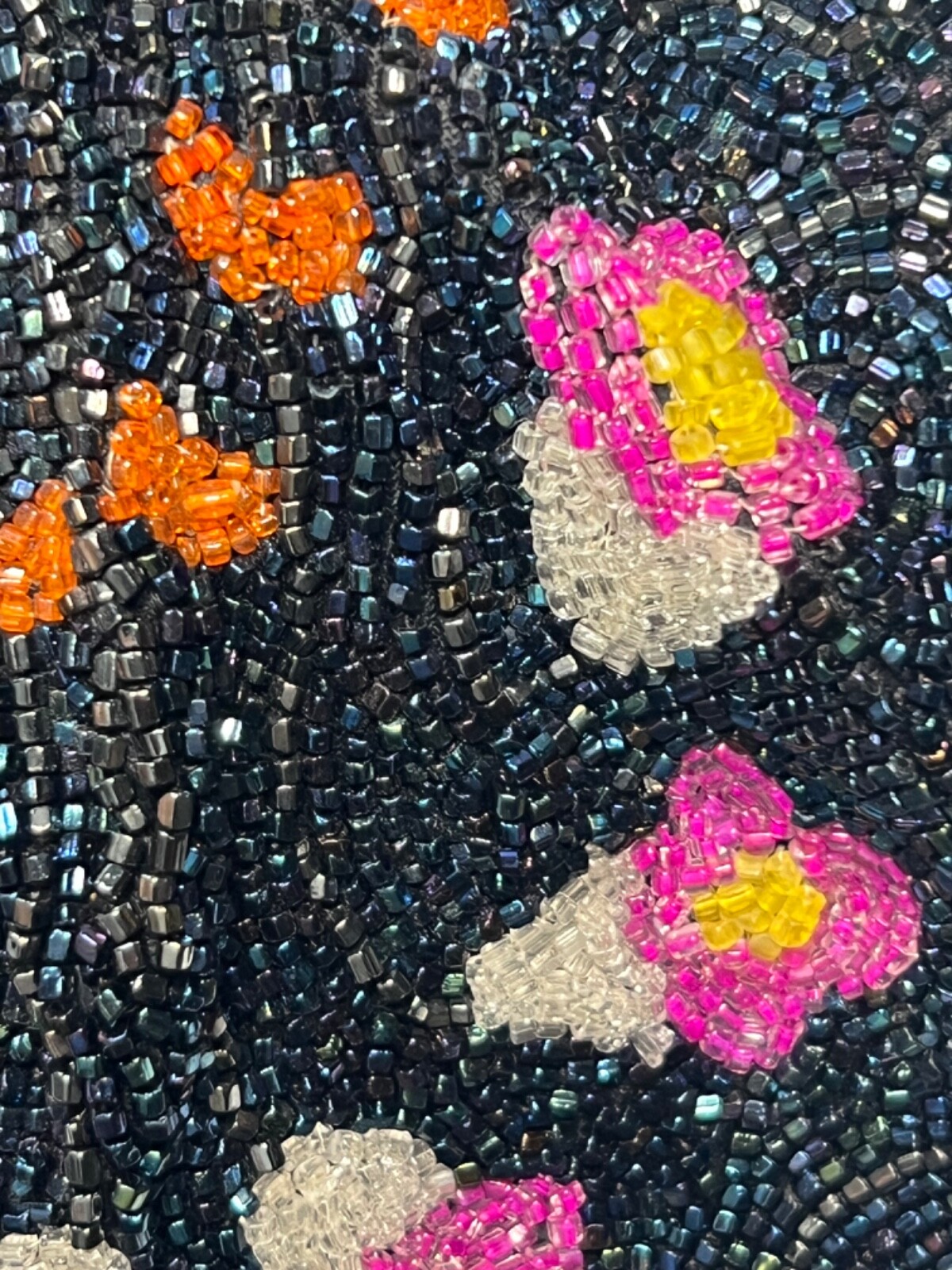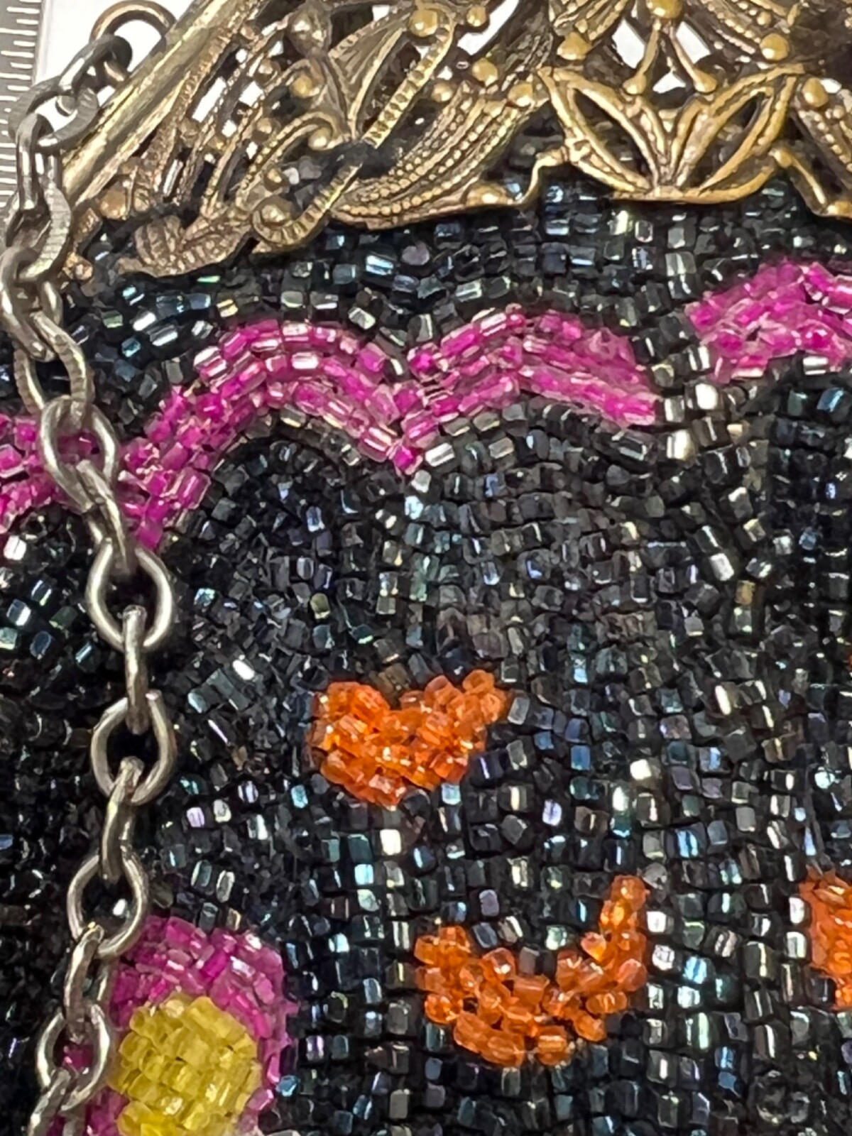 как выглядит Cocktail Hand Beaded Purse Brass Fligree Metal Closure Dark Blue Pink HNG104 фото