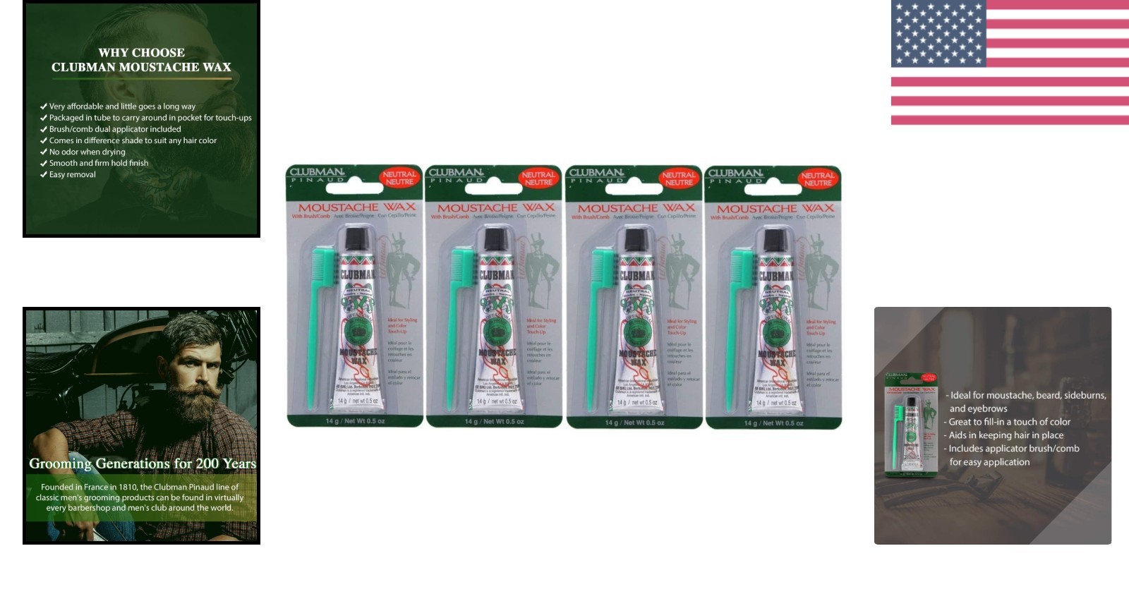 как выглядит Travel-Friendly Moustache Wax with Brush Comb - Neutral Color 0.50 oz, Pack of 4 фото