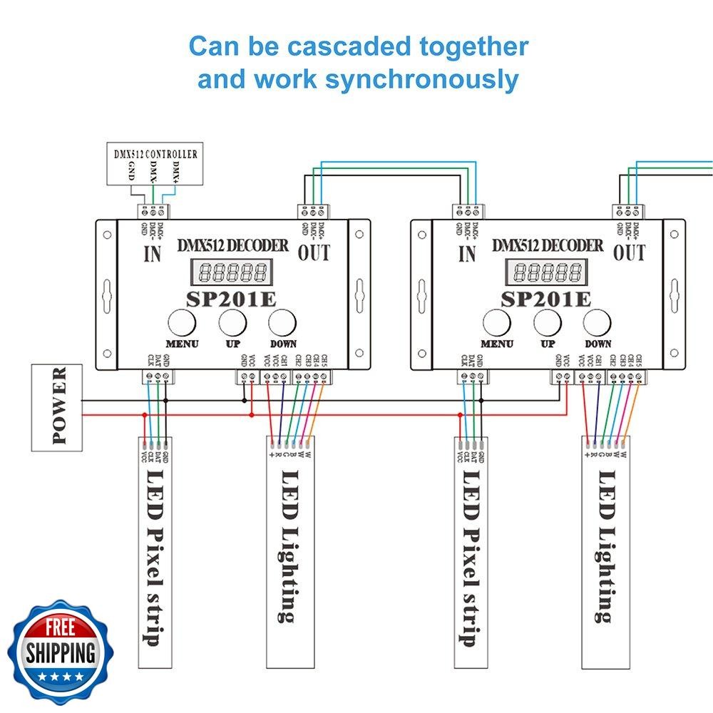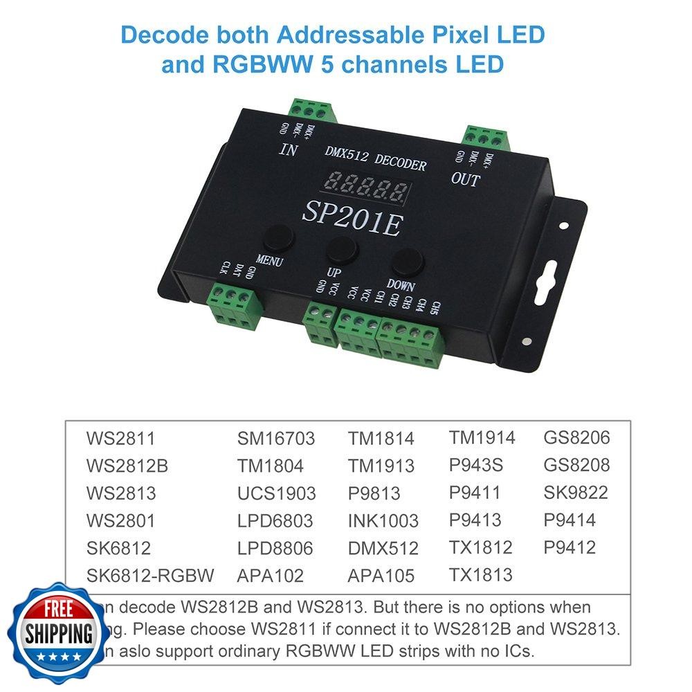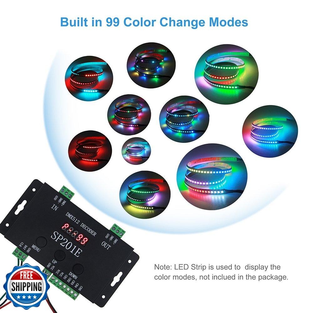 ALITOVE WS2812B WS2811 DMX to SPI Controller Decoder, W/ 99 Color Modes, 5 Ch