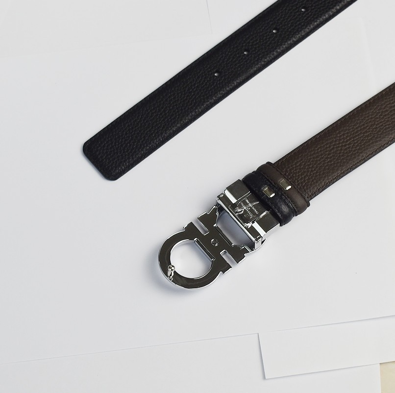 Ferragamo Men's belt Reversible/adjustable Silver finish Gancini buckle 120cm