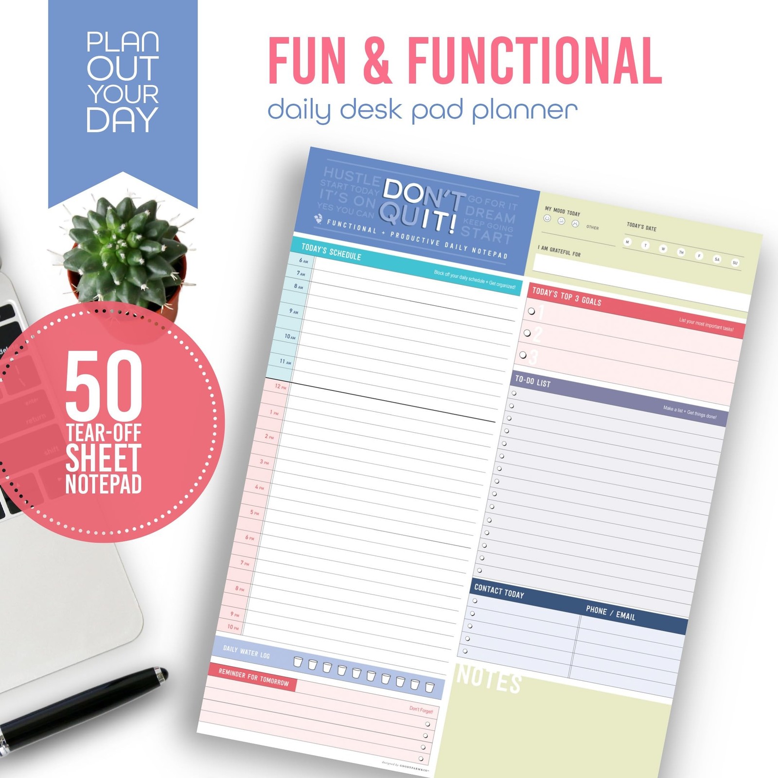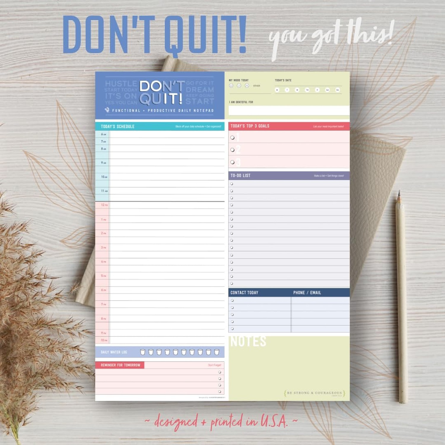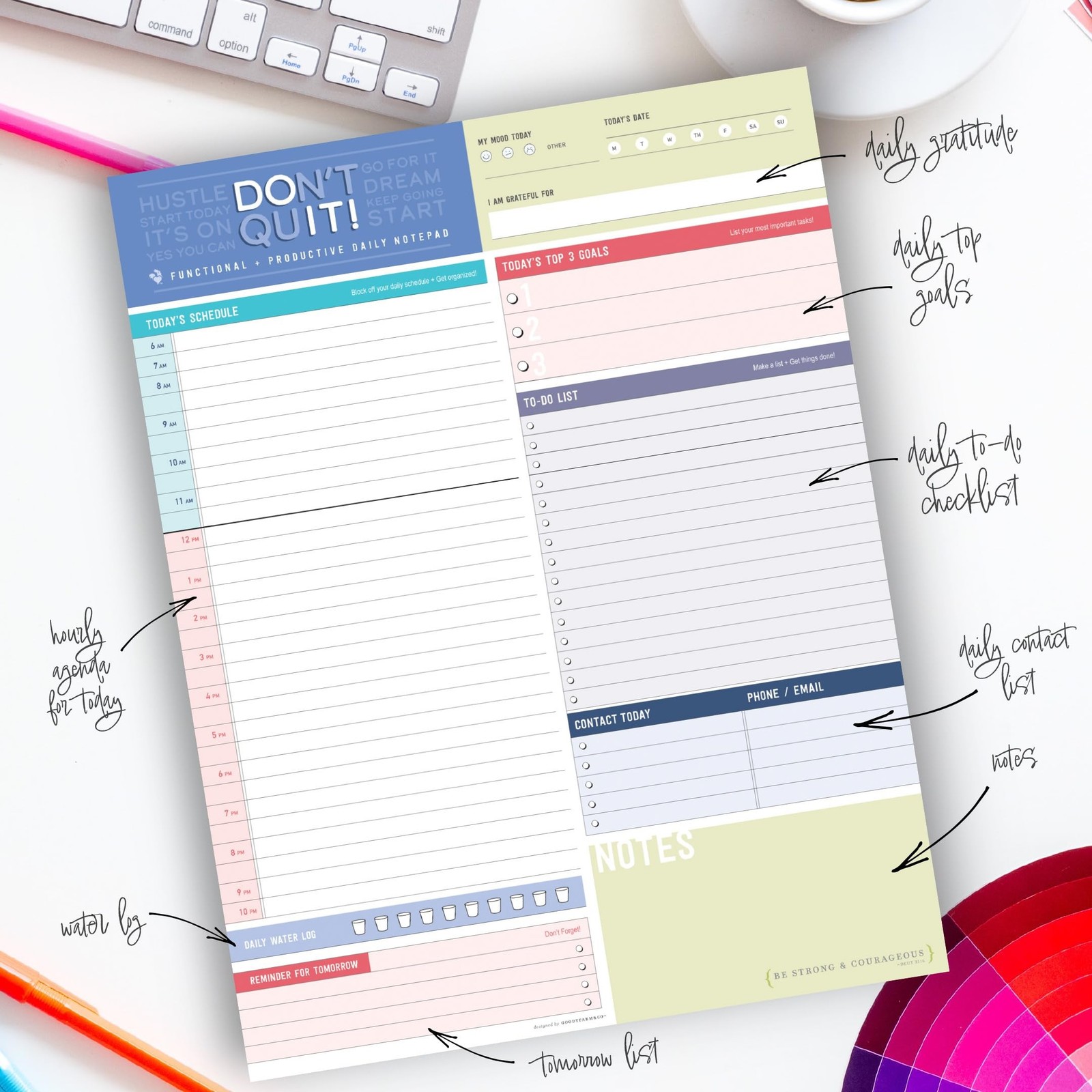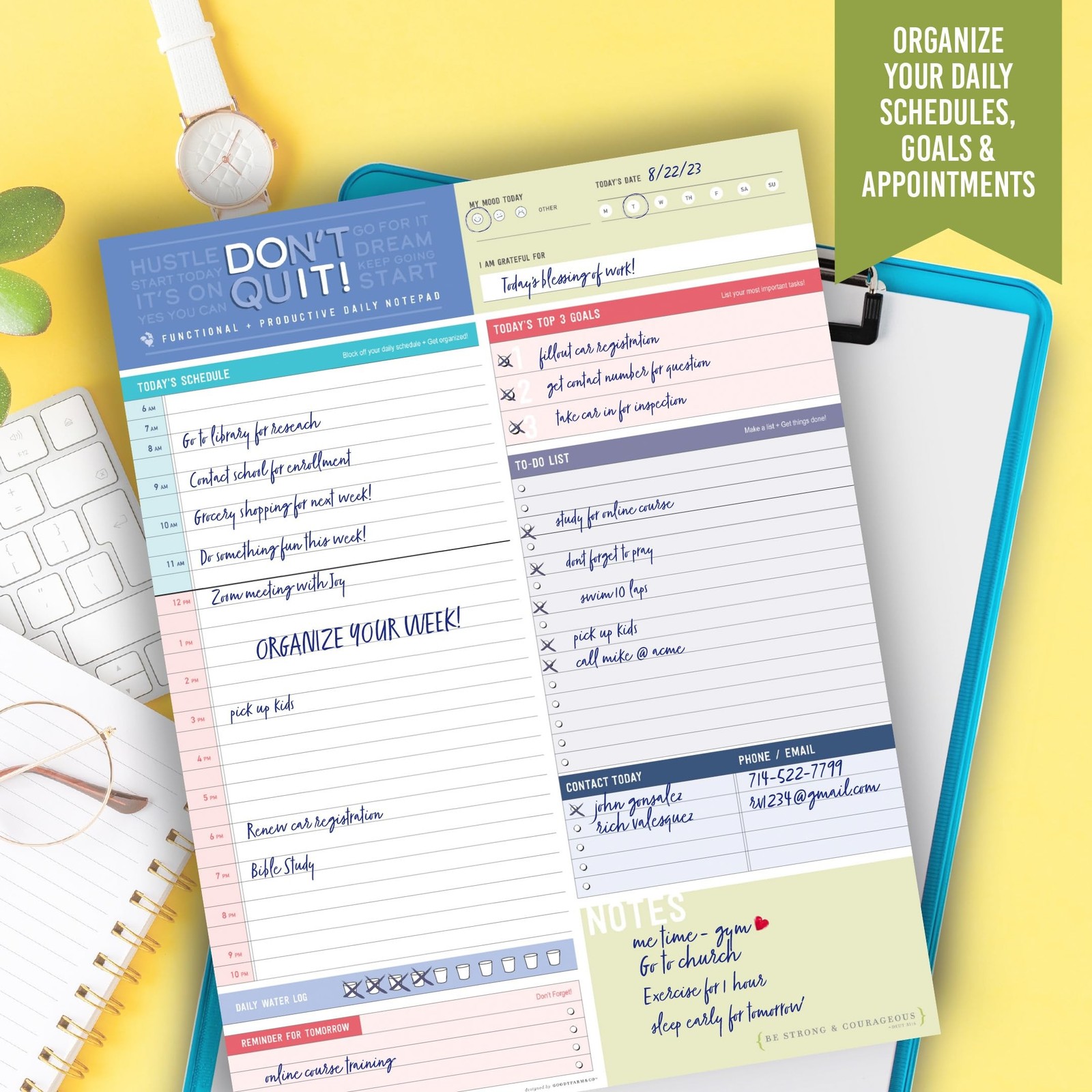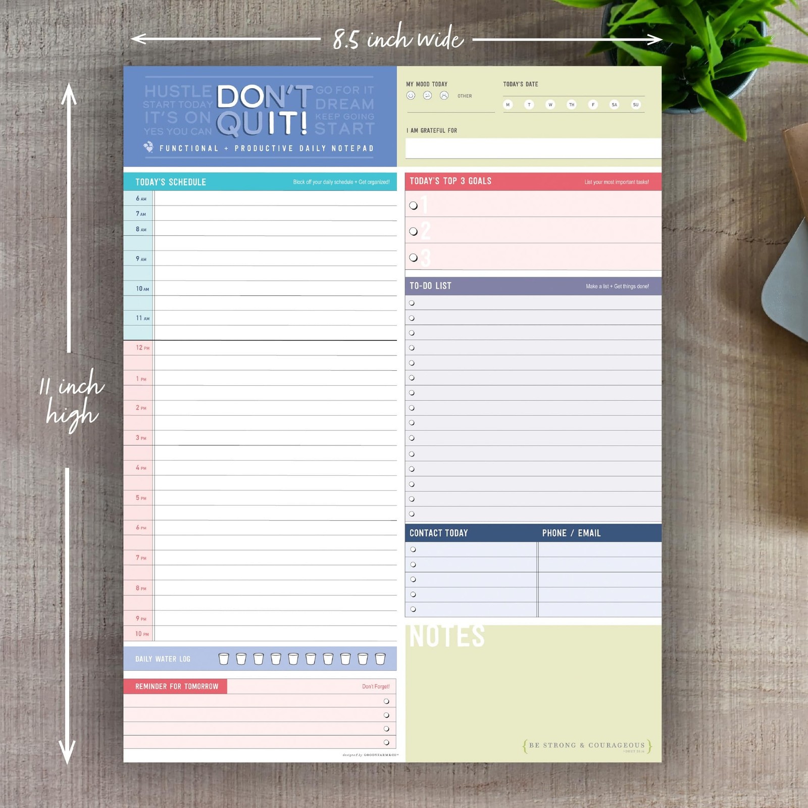 Color Block Daily Planner Notepad - 8.5 x 11 - Work, School Note Organizing P...