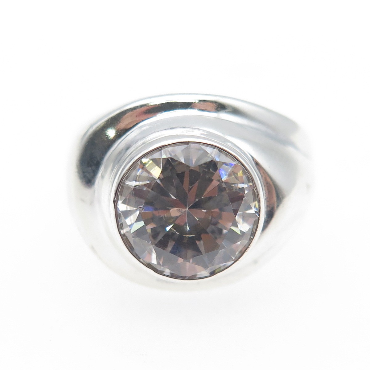 925 Sterling Silver Vintage Mexico Round-Cut C Z Modernist Ring Size 5.25