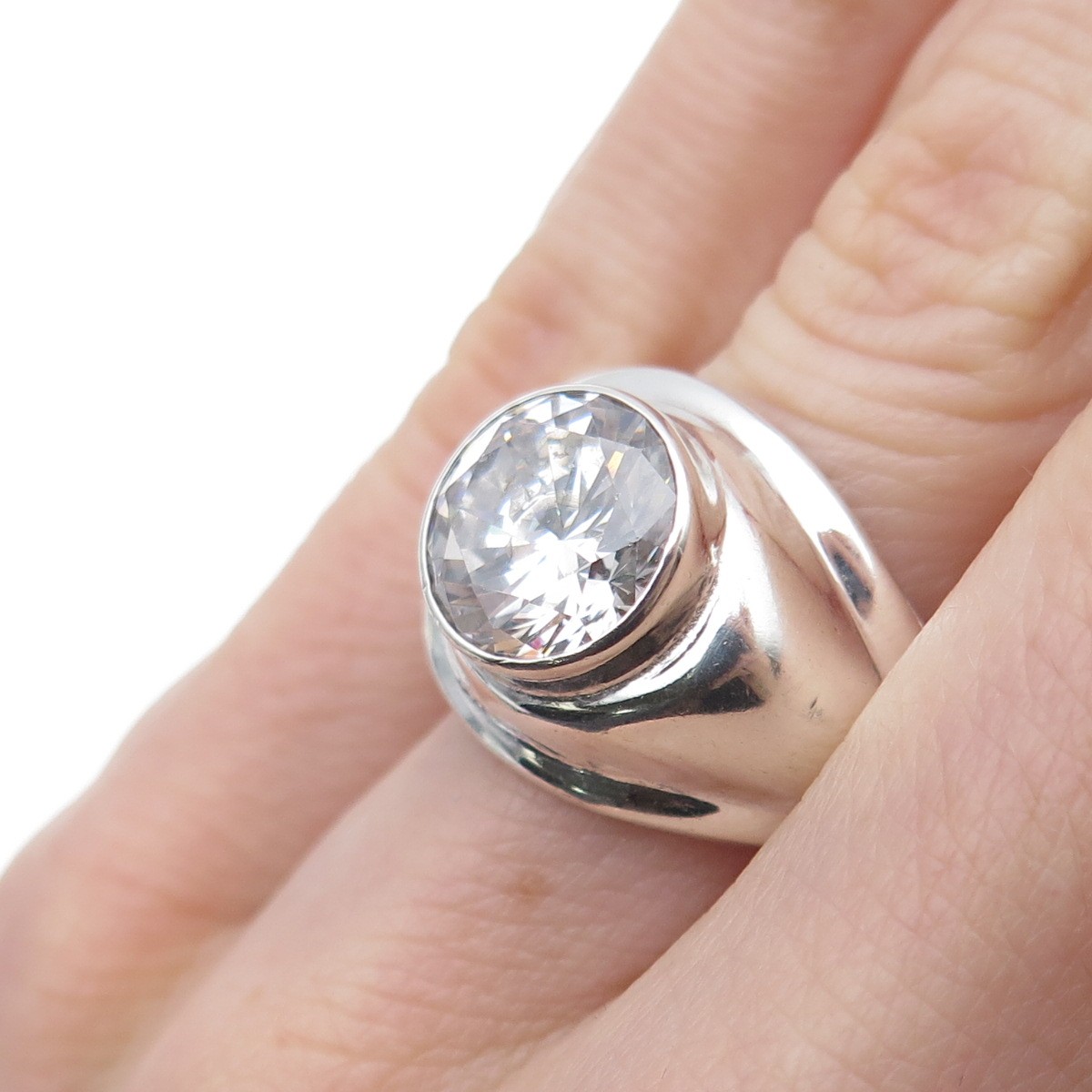 как выглядит 925 Sterling Silver Vintage Mexico Round-Cut C Z Modernist Ring Size 5.25 фото