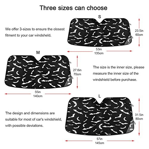 Black Car Windshield Sun Shade Happy Halloween Car Sun Visor 55 x 28 inch Bat