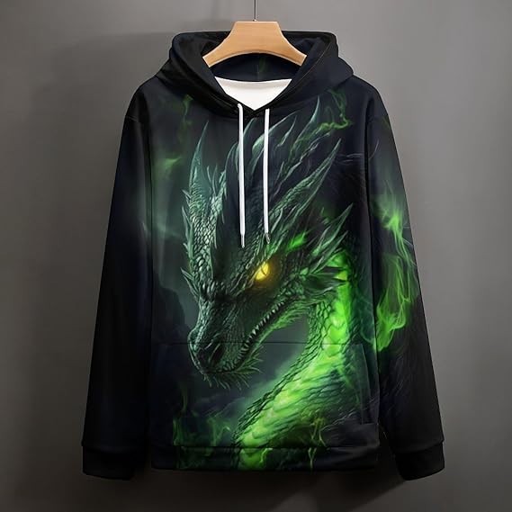 3D Green Dragon Hoodie Fire Breath Fantasy Print Pullover Sweatshirt Unisex