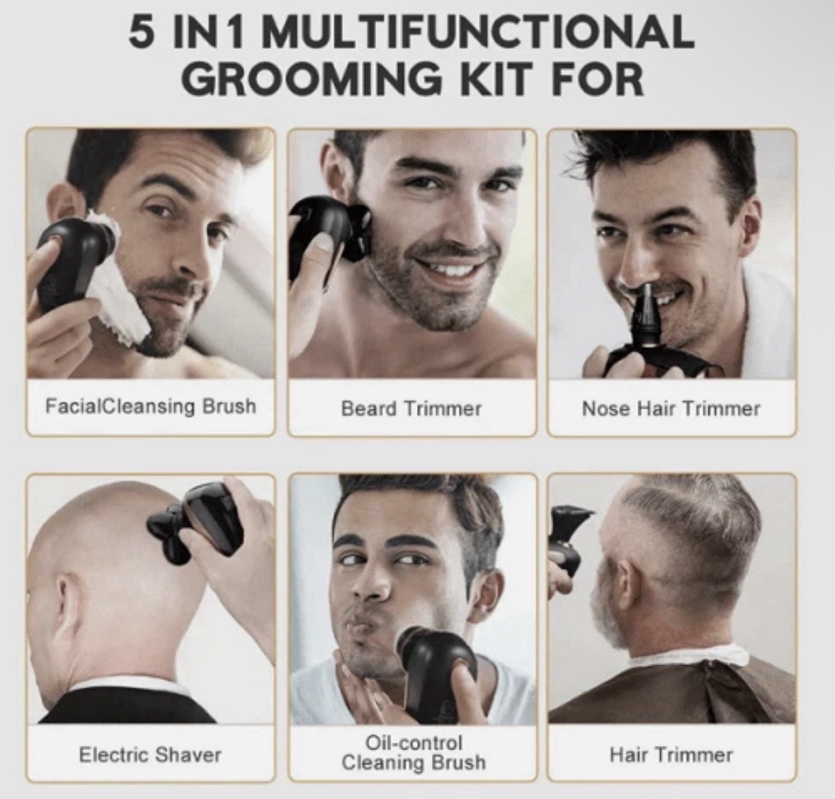 5-in-1 Rotary Electric Shaver 4D Rechargeable Bald Head Hair Beard Trimmer Razor