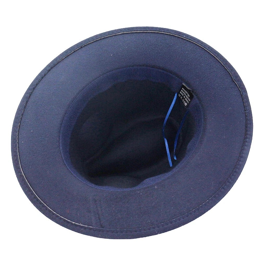 как выглядит Navy Blue Fedora Hat, Gold Leaf Band, Stylish Unisex Felt Panama Jazz Cap фото