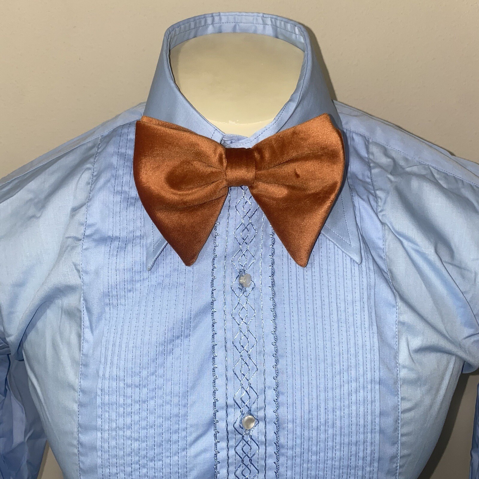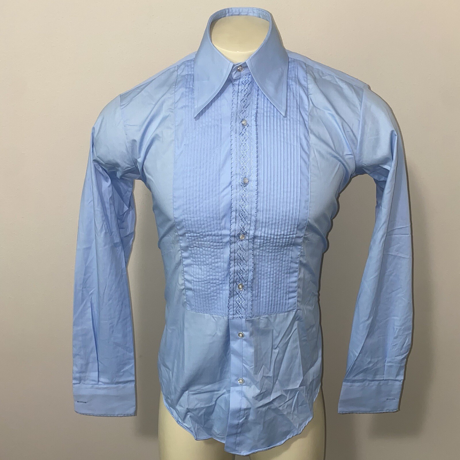 как выглядит Vtg 70s 80s Tuxedo Shirt After Six Blue Ruffles Prom Wedding Small Mens 14 33 фото
