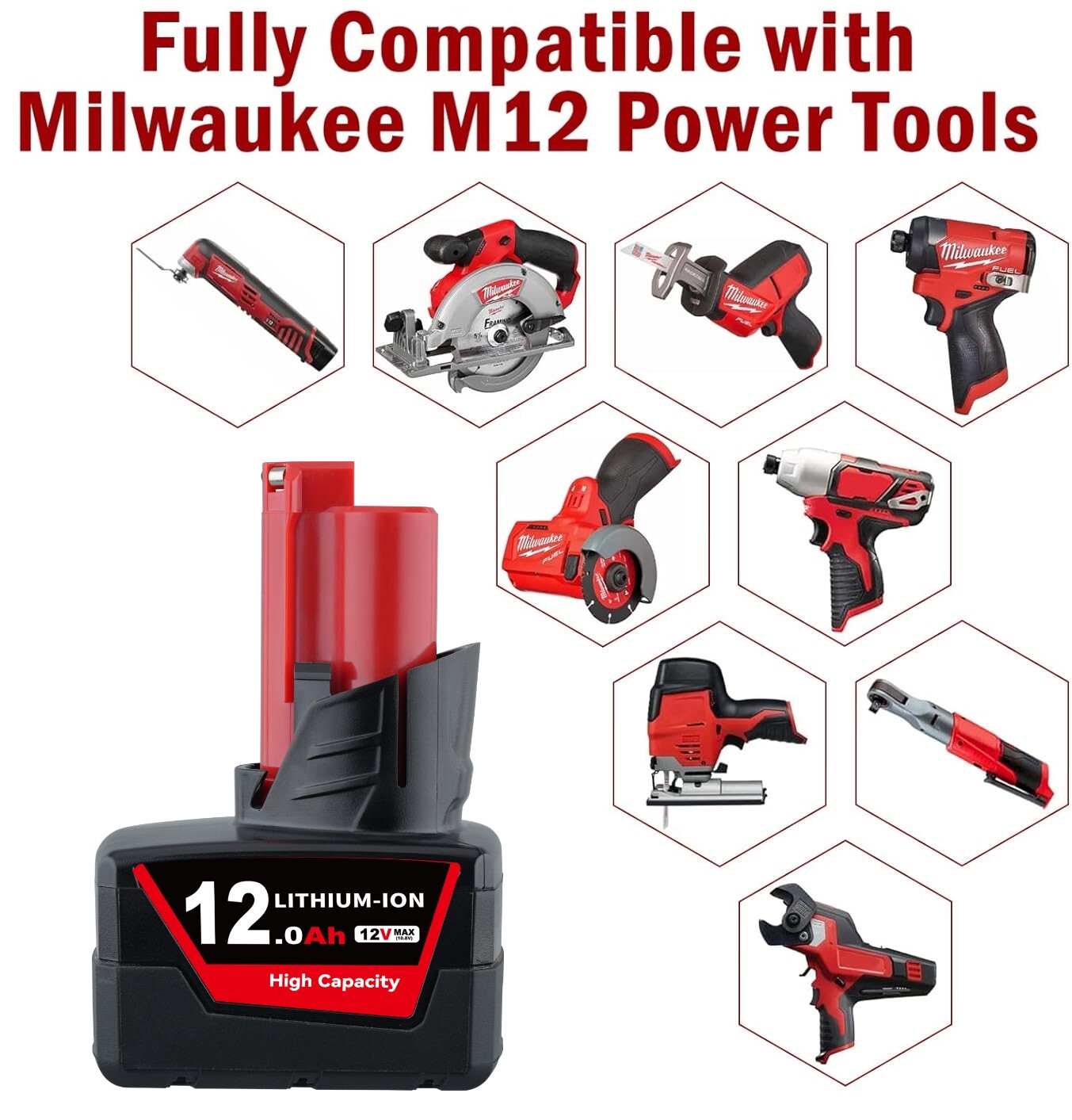 12.0Ah 48-11-2460 for M12 LITHIUM 12V Extended Capacity Battery For Milwaukee
