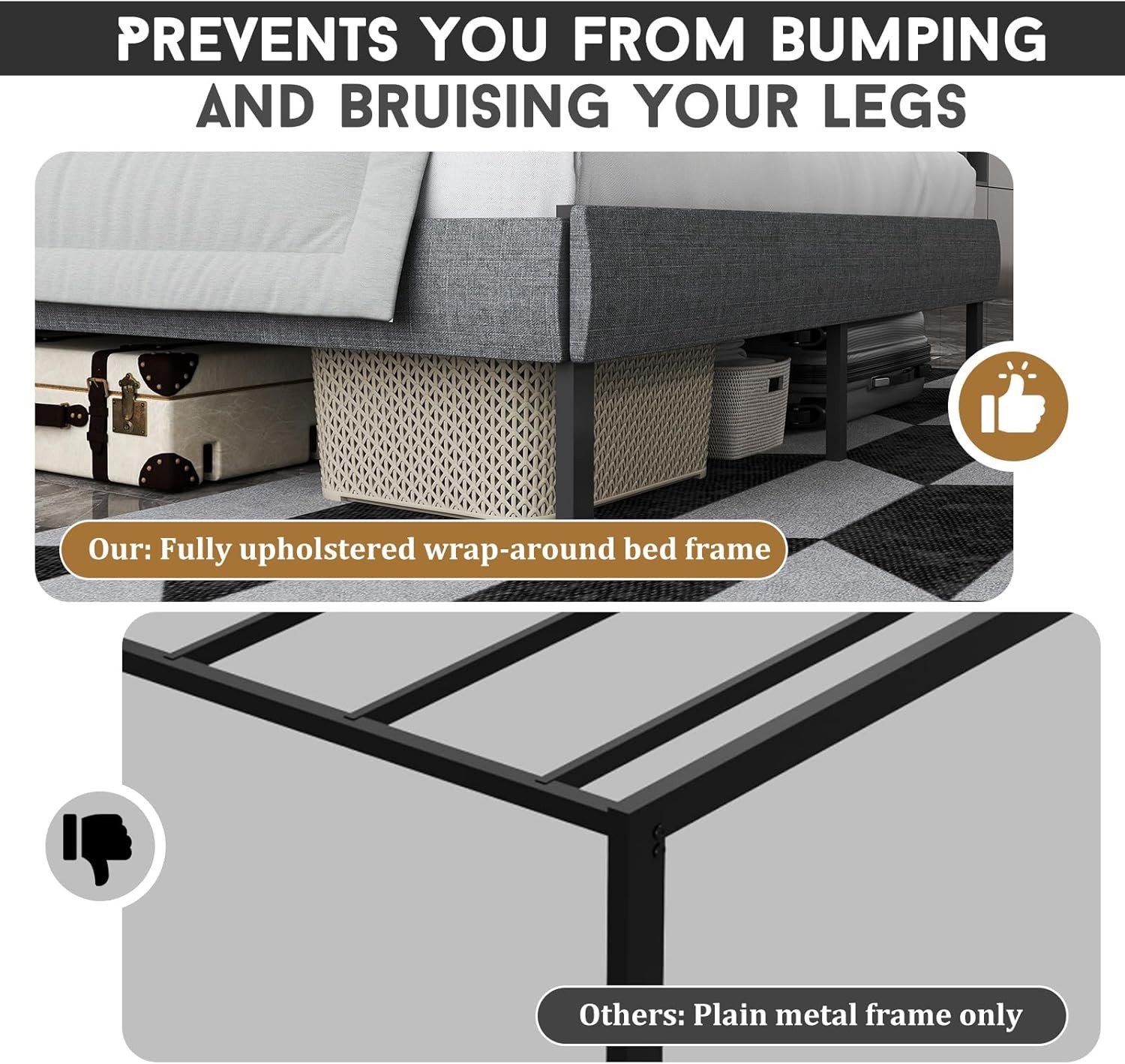 Queen/Twin/Full Bed Frame with Velvet Upholstered Headboard Metal Slats Support