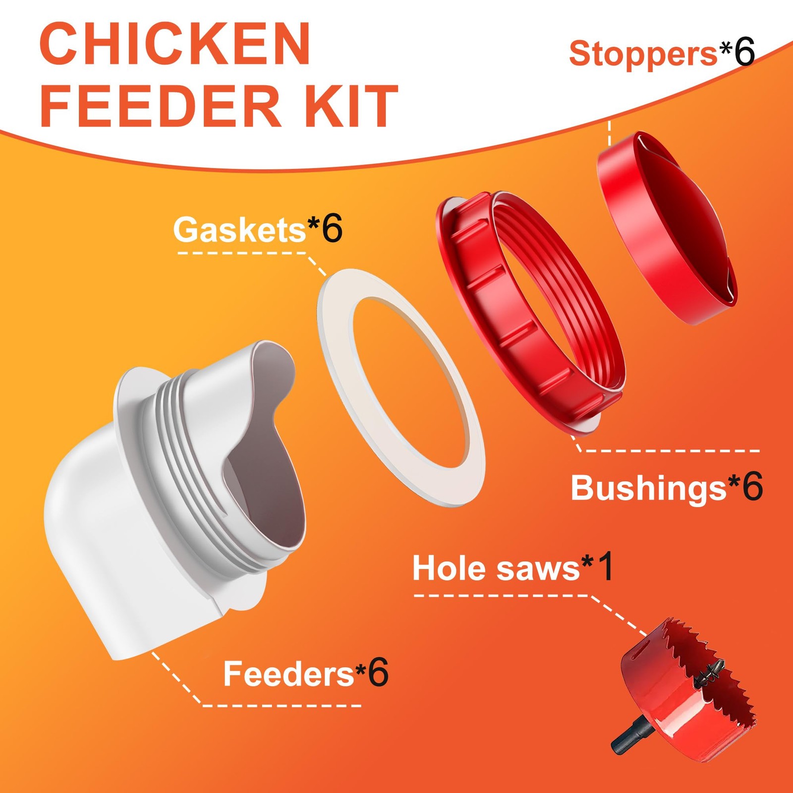 No-Waste Automatic Chicken Feeder 6 Ports Gravity Kit with Covers