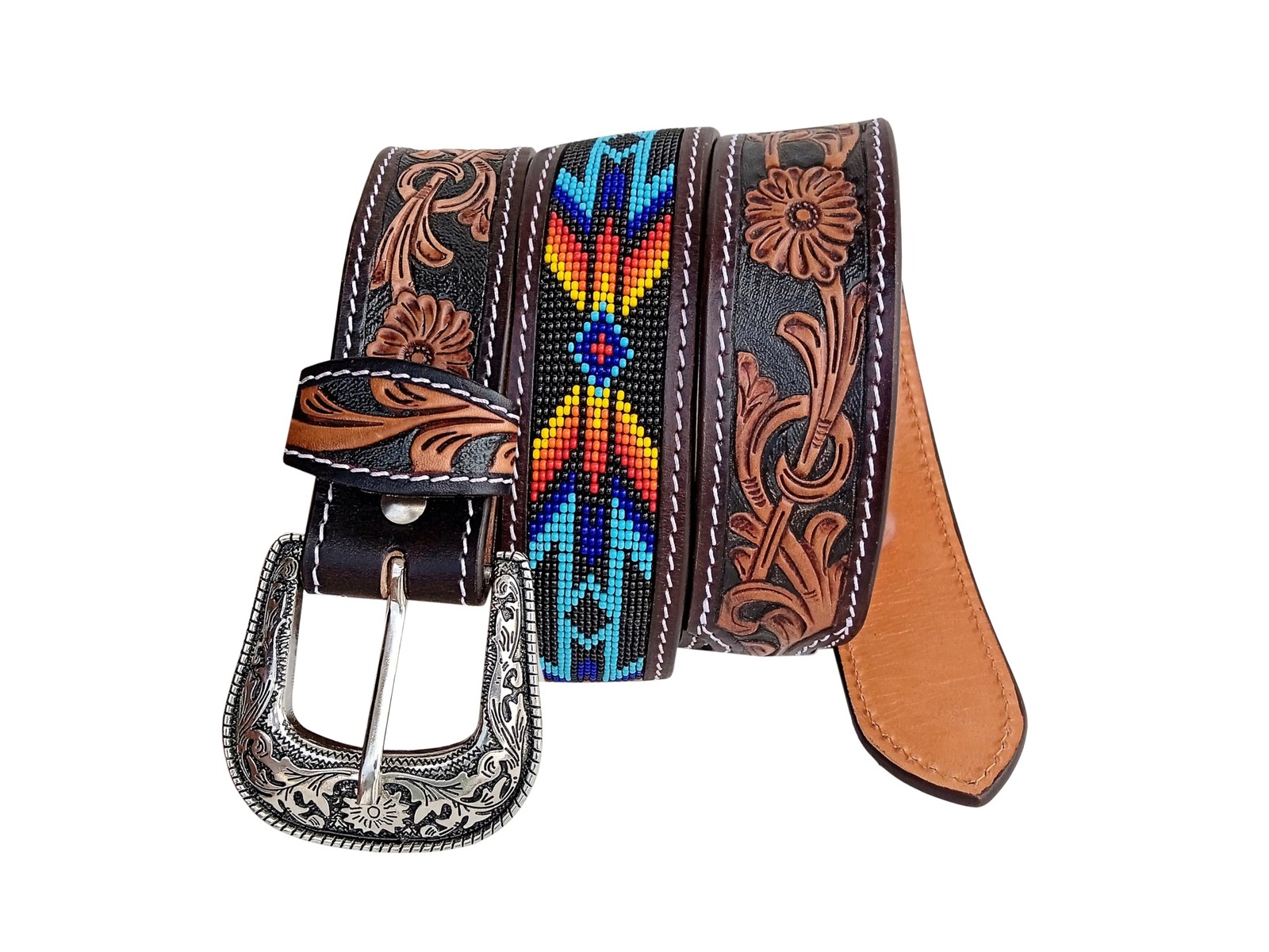 item_name: Affilare Western Tooled Leather Beaded Belt For Men and Wo..