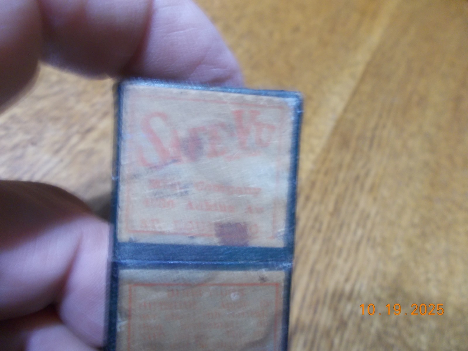 Safe-Vu Mfg. Co. St. Louis Mo. Wax Compound for Safe-Vu Glasses used, see photos