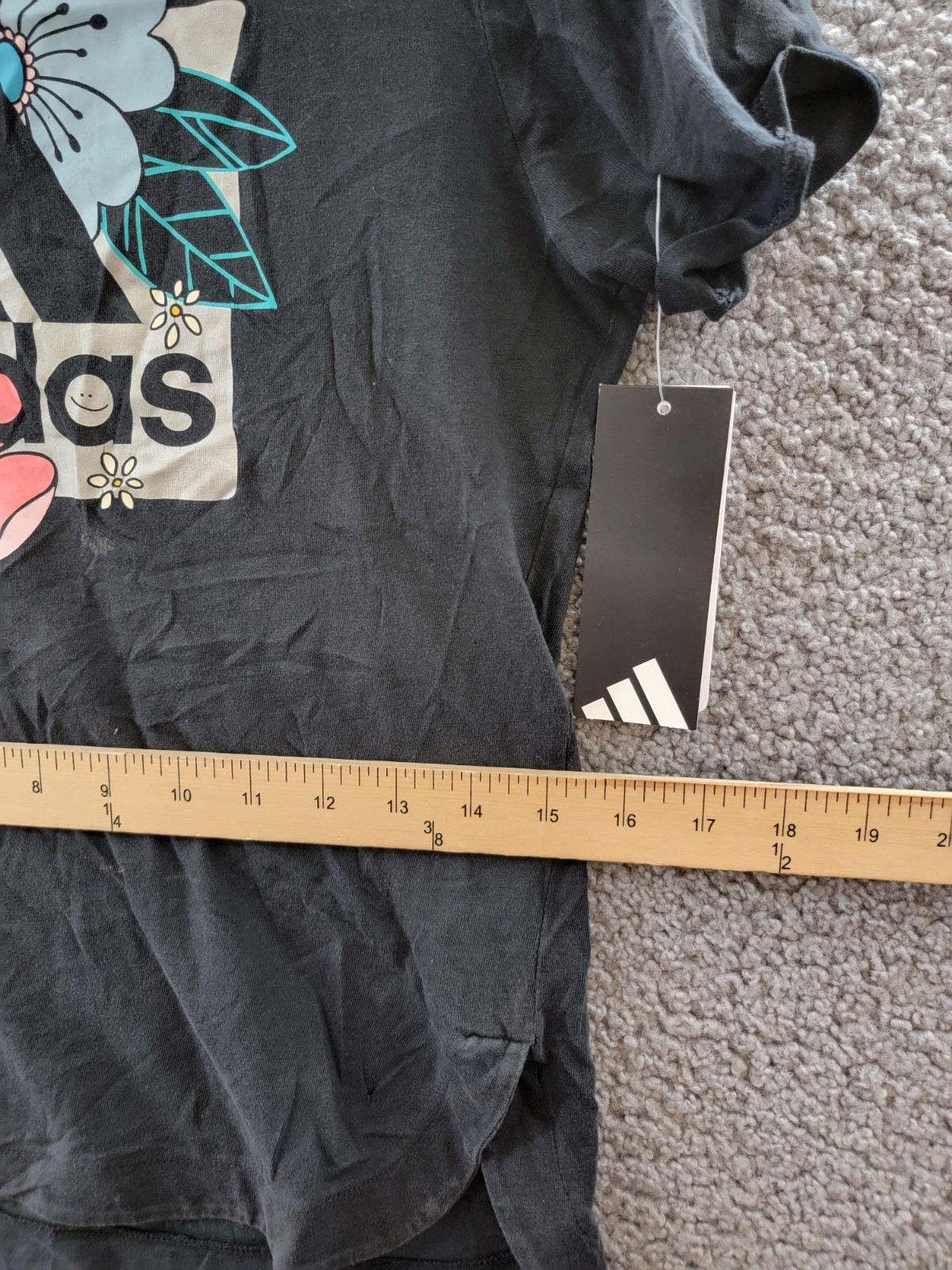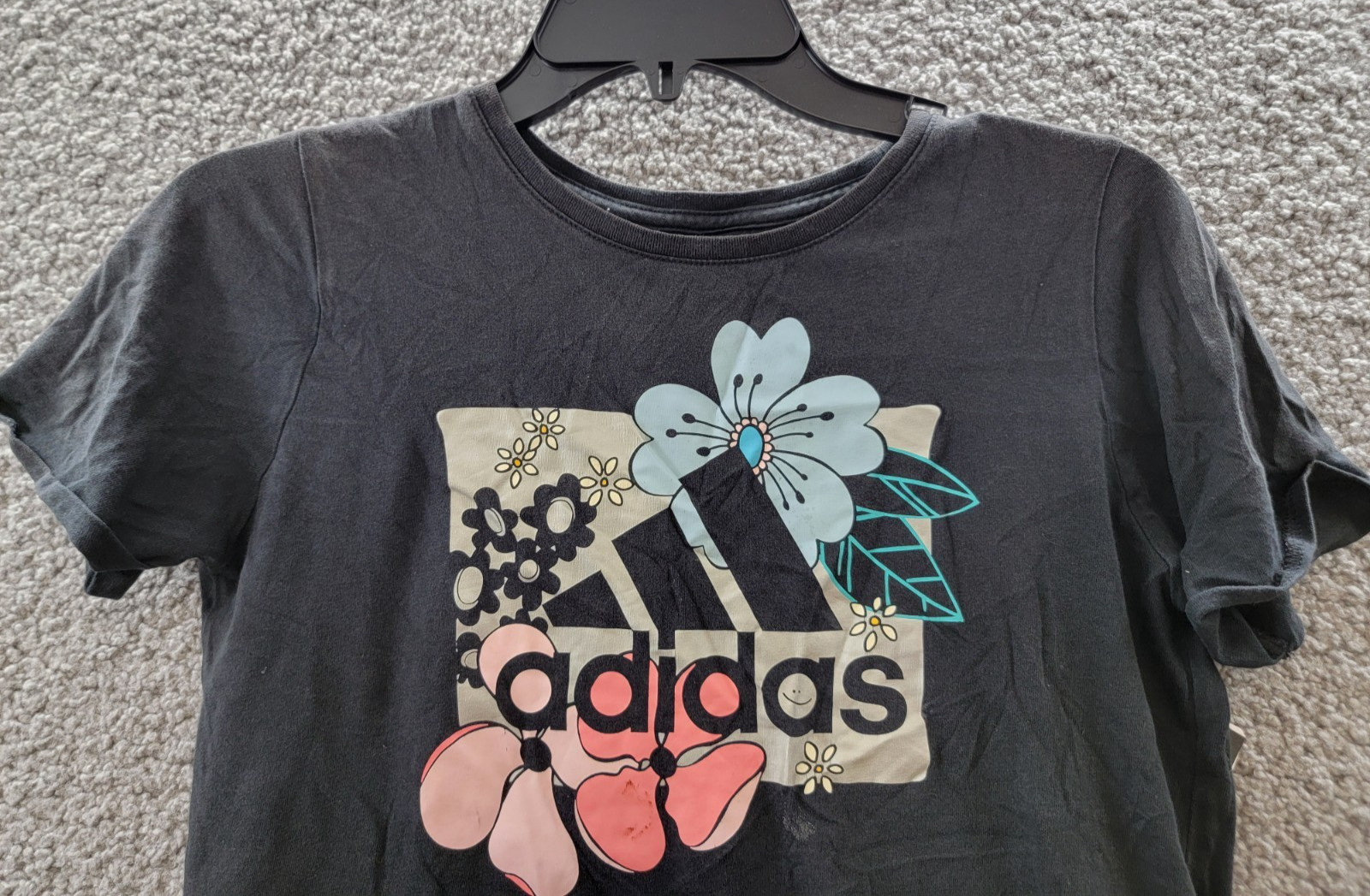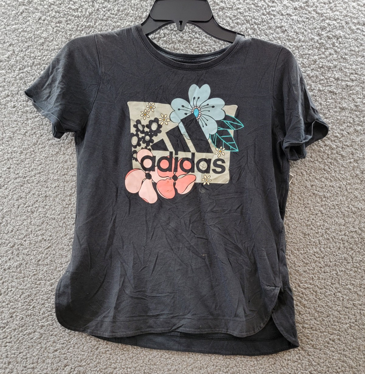adidas Sportswear Crewneck Roll Sleeve Floral Logo Tee Big Girls L 14 Black