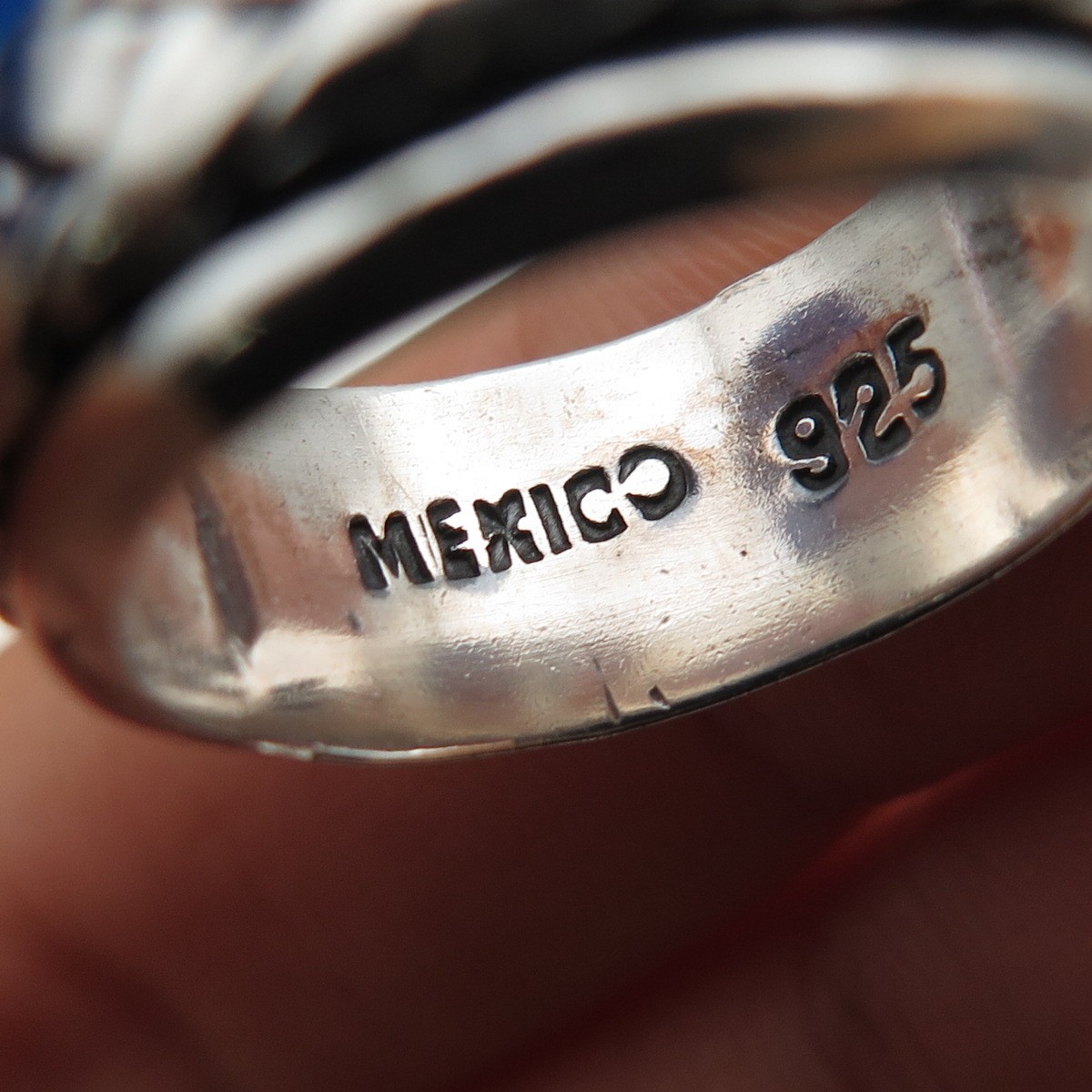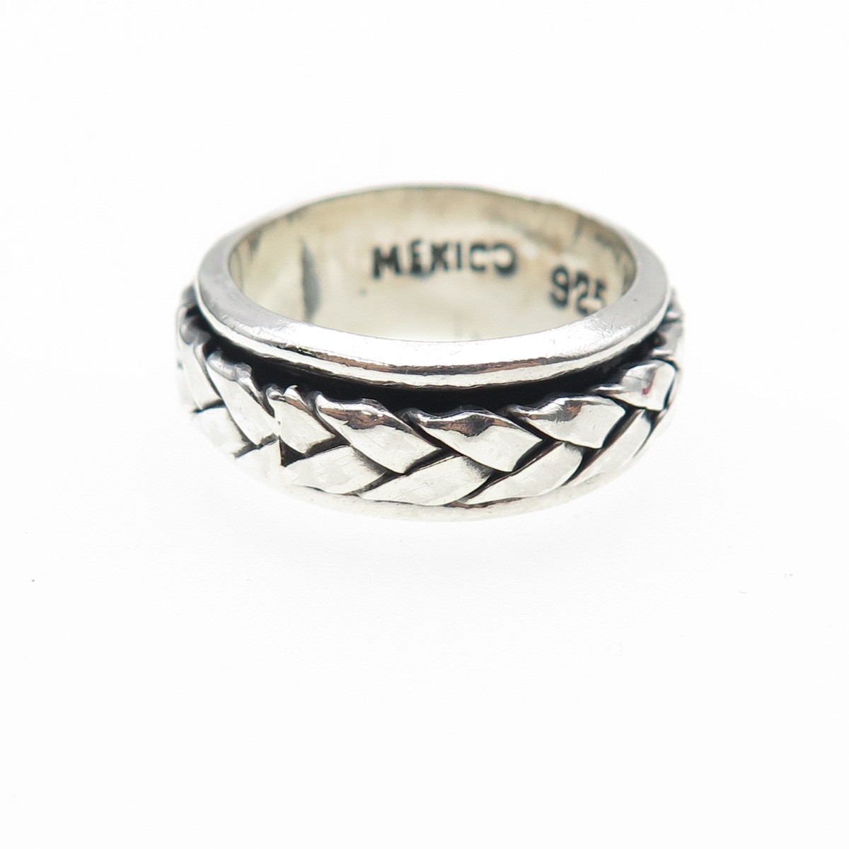 925 Sterling Silver Vintage Mexico Woven Oxidized Rotating Band Ring Size 7