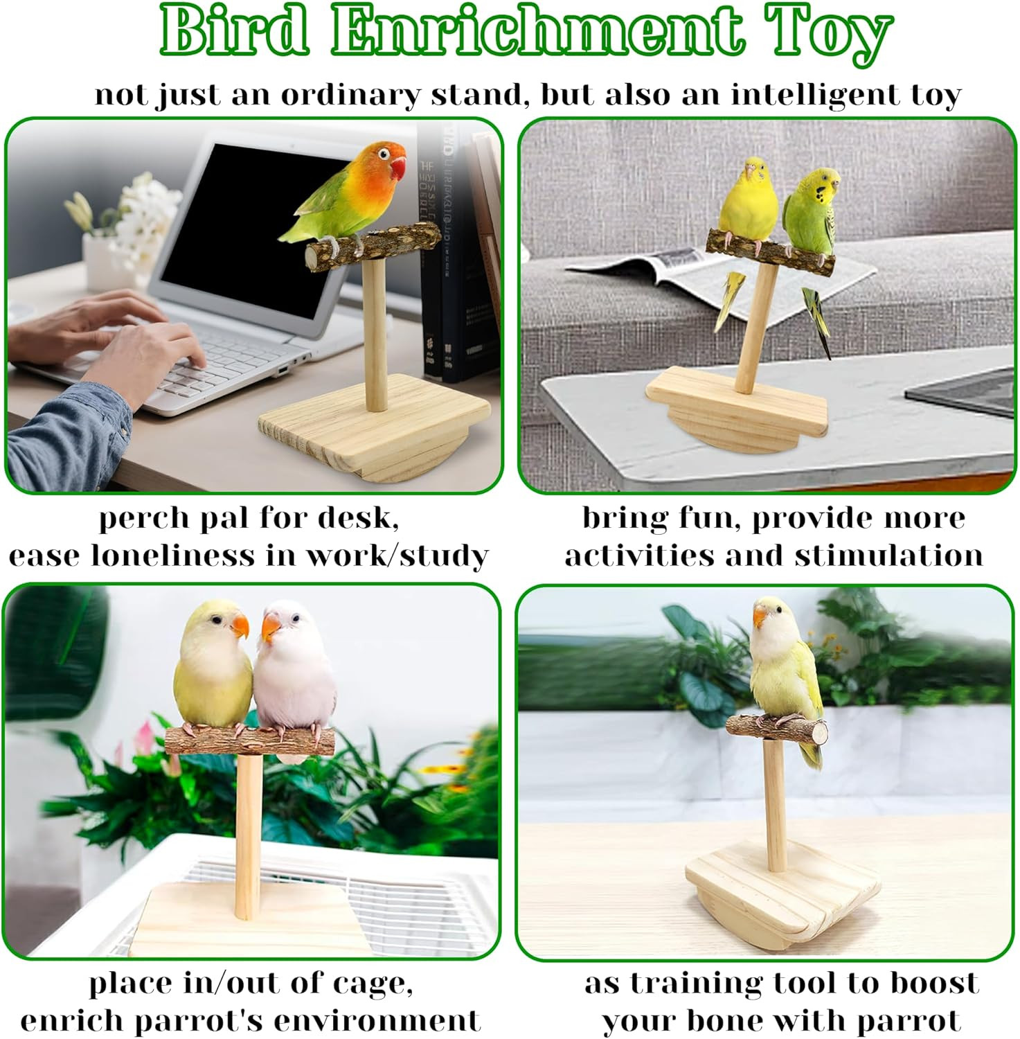 Natural Wood Bird Perch Stand Training, Intelligence Puzzle Enrichment Toys for