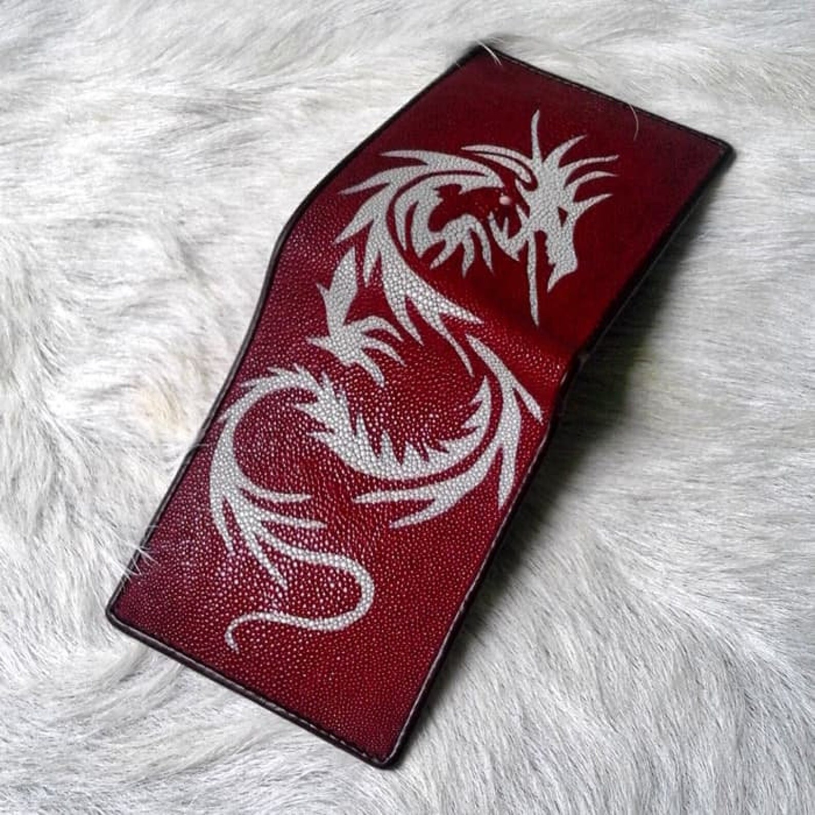 как выглядит Original Mens Wallet RED Motif Dragon R.a.y Leather Bifold Genuine Gift Bday фото