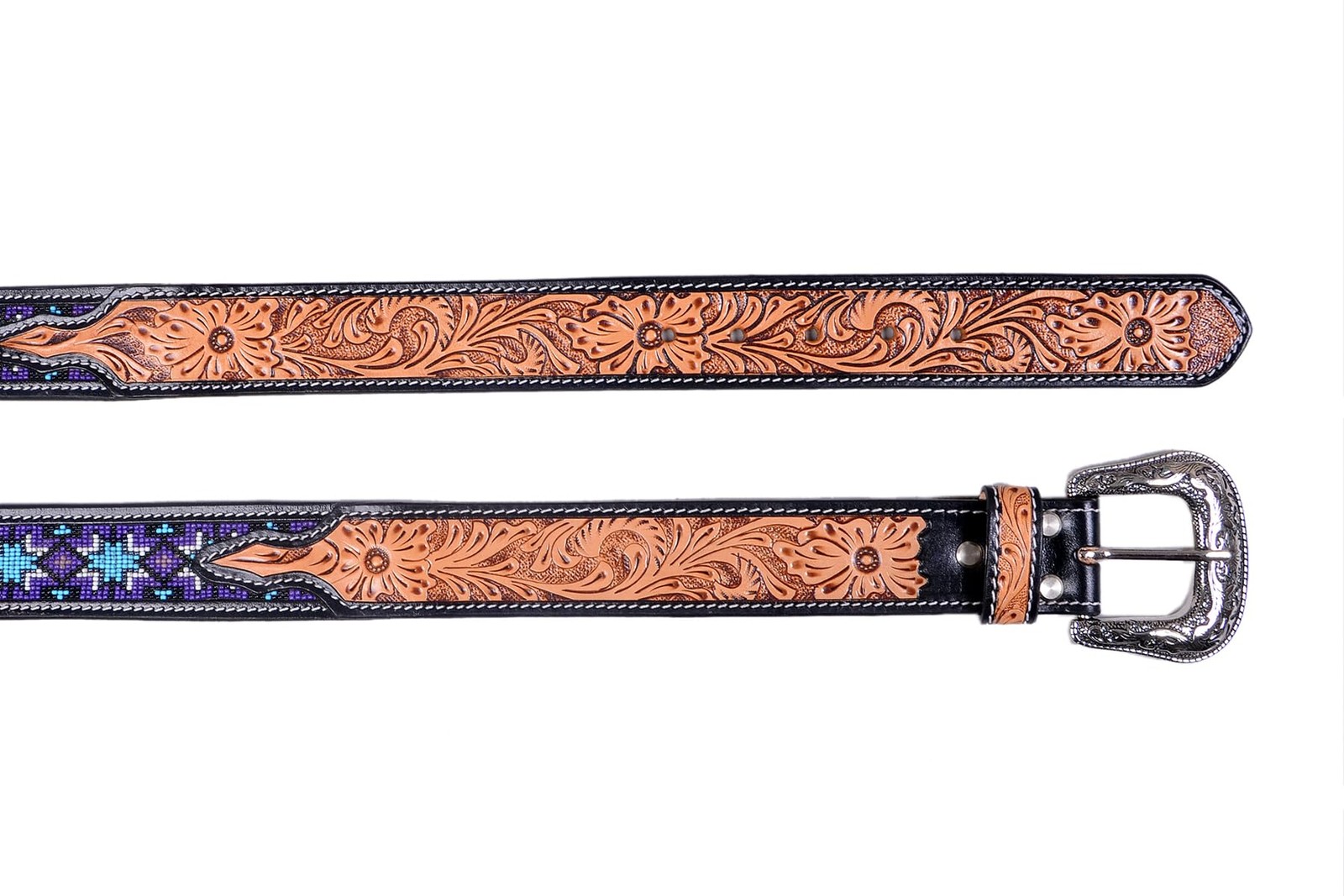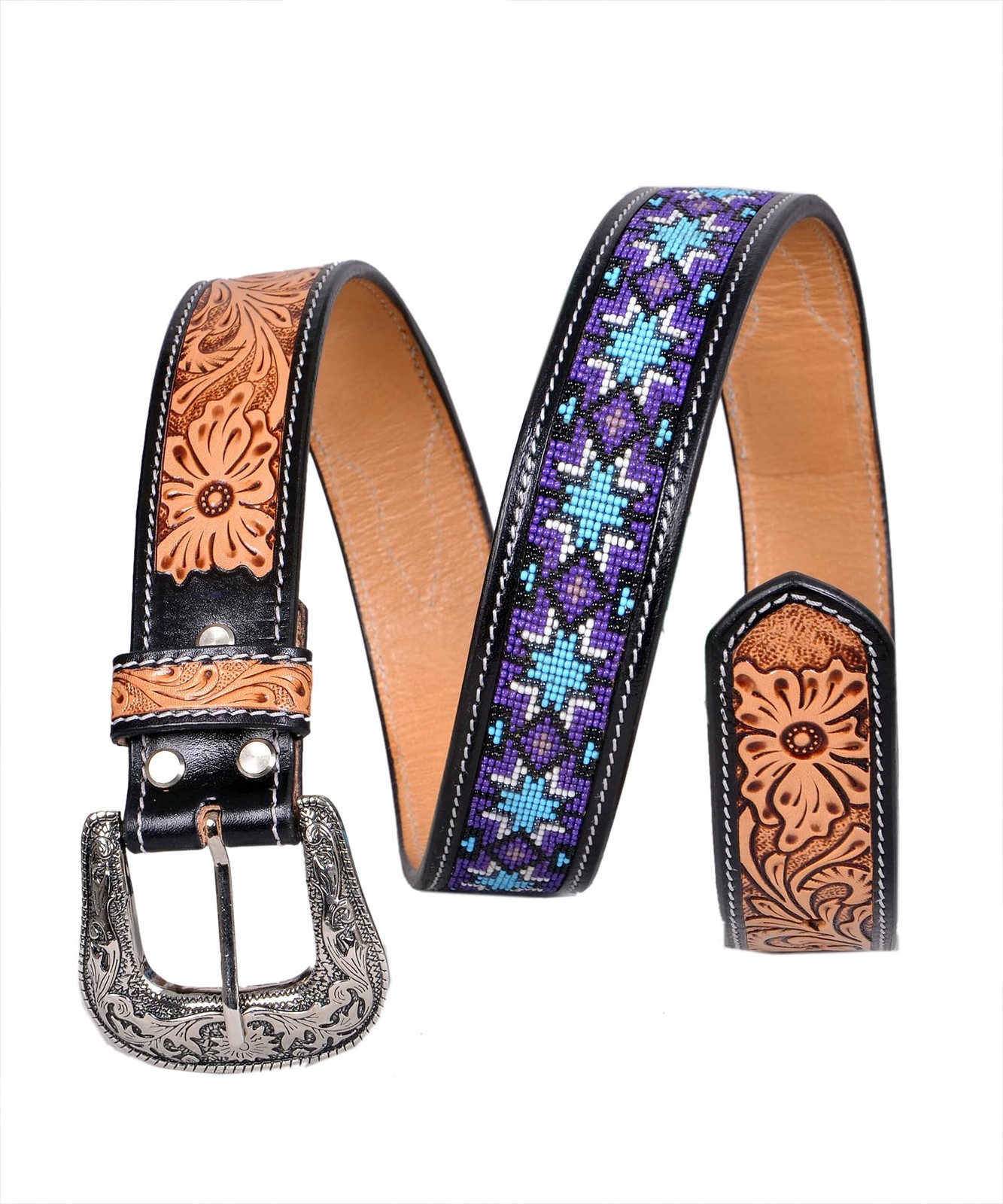 Affilare Western Tooled Leather Beaded Belt For Men and Women 30IS105