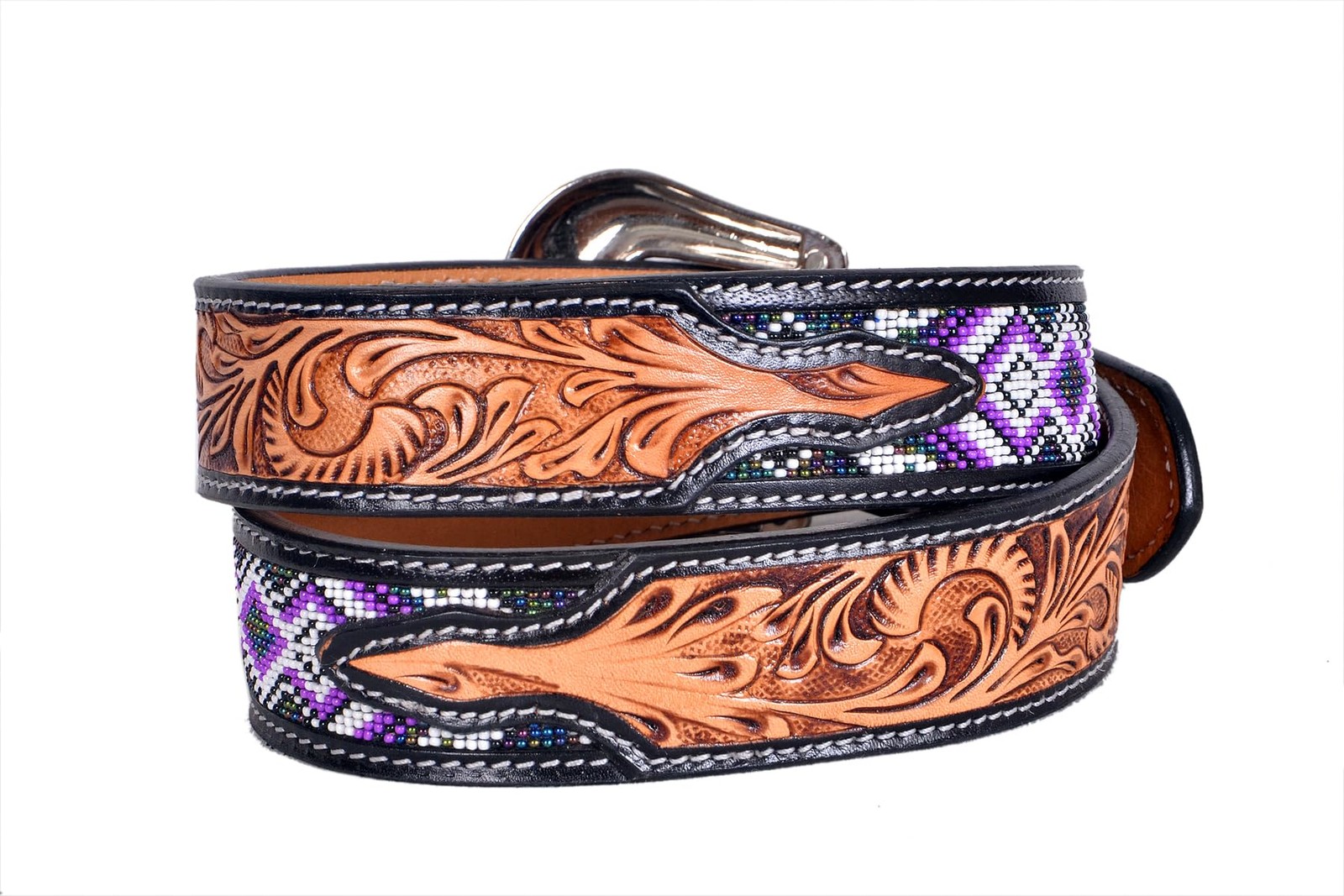 Item Name: Affilare Western Tooled Leather Beaded Belt For Men and Wo..
