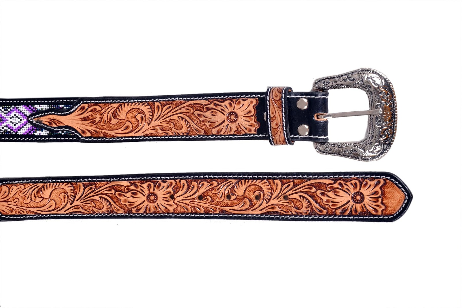 Affilare Western Tooled Leather Beaded Belt For Men and Women 30IS110