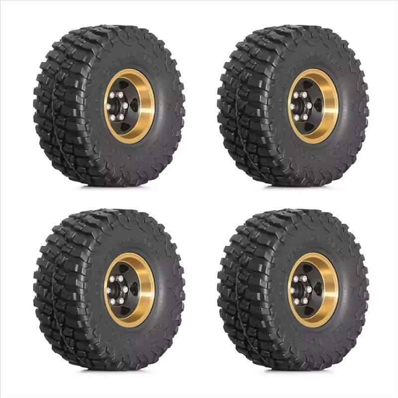 1.0 Brass Beadlock Wheel Rim Tires Set For 1/18 TRX4M 1/24 SCX24 FMS RC Crawler