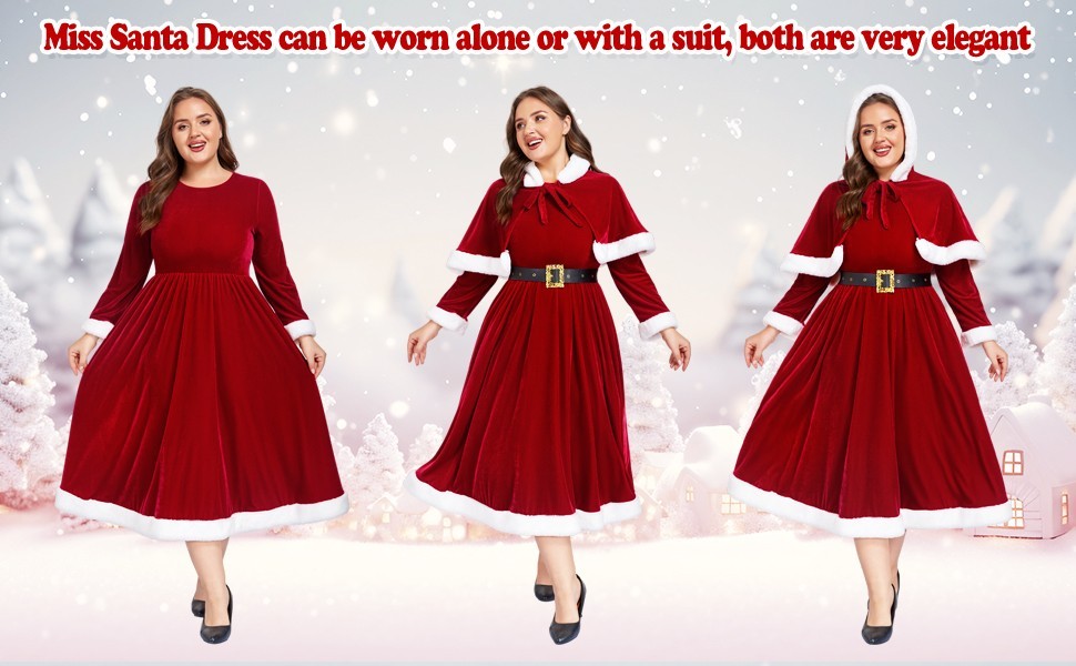 3PCS Mrs Claus Costume Women Christmas Claus Costume Santa Dress Cosplay Outfit