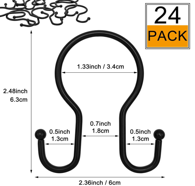 как выглядит Double Shower Curtain Hooks Rings,24 Pcs Rustproof Metal Shower Hooks for Shower фото