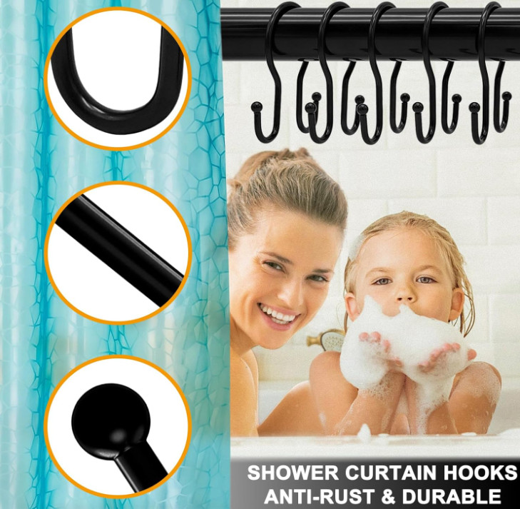 Double Shower Curtain Hooks Rings,24 Pcs Rustproof Metal Shower Hooks for Shower