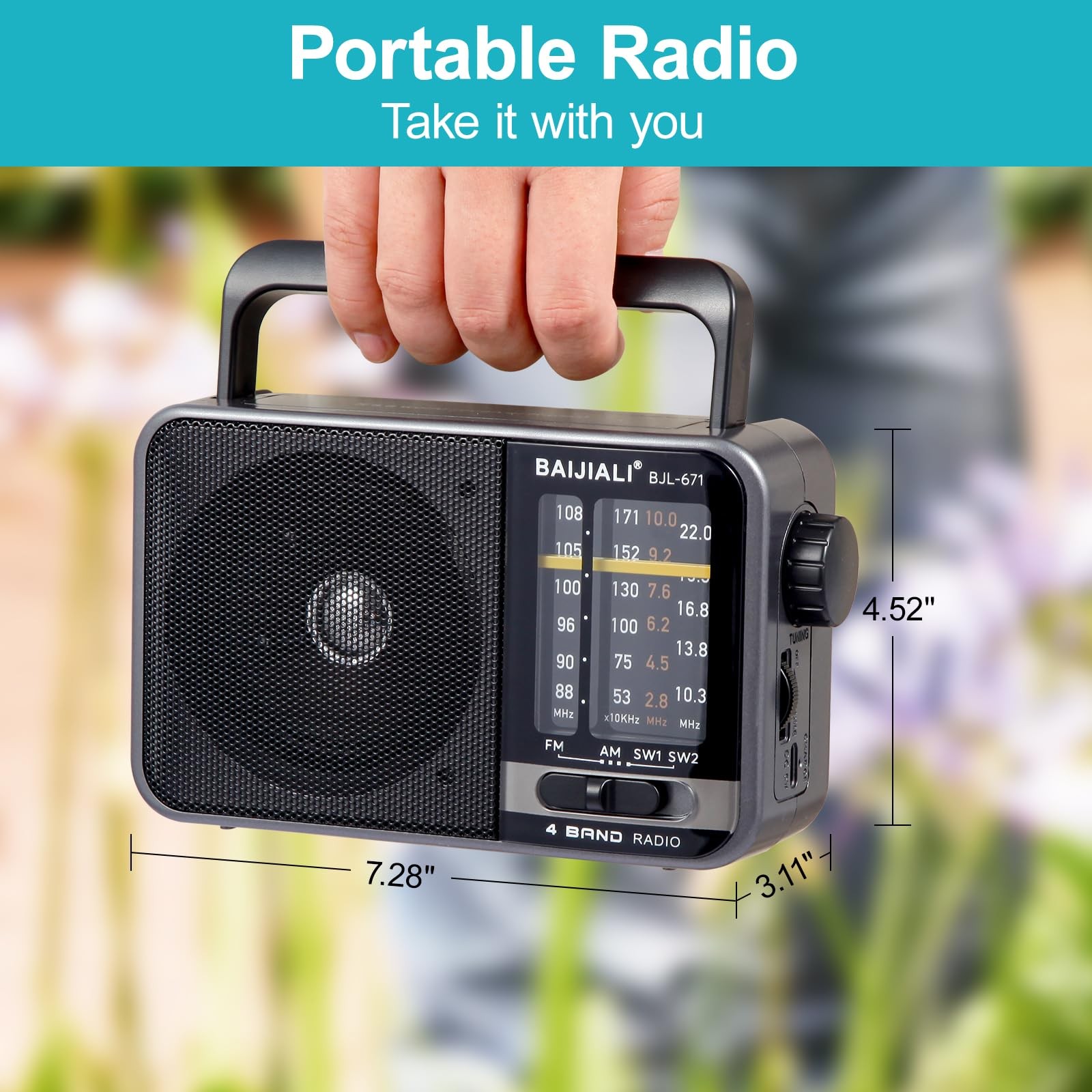 Radio port til AM/FM con transistores y altavoz, alimentada por bater a o USB