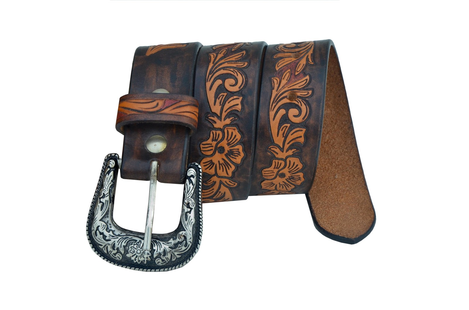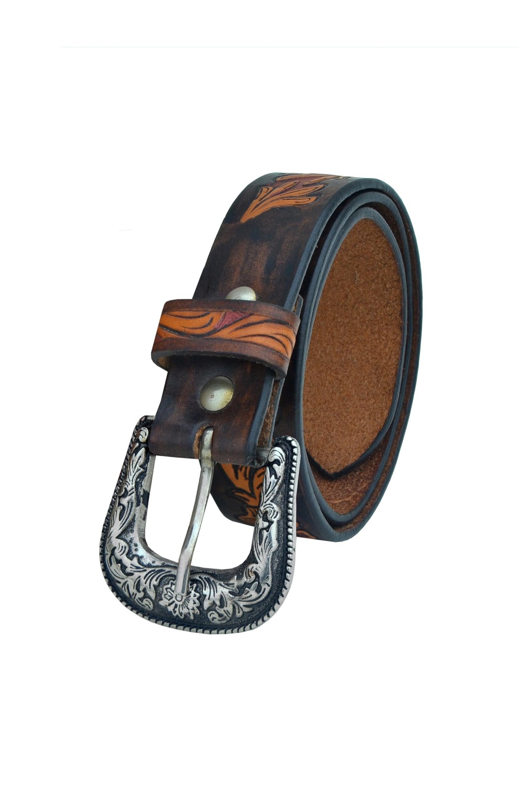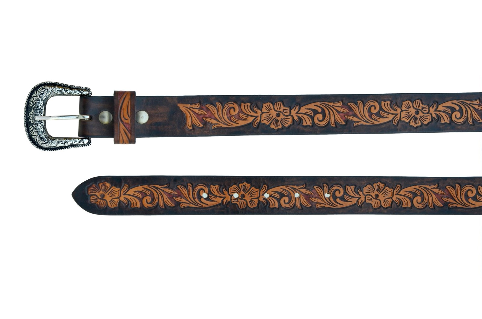 Item Name: Affilare Kids Western Belt Tooled Floral Hand Finished Lea..