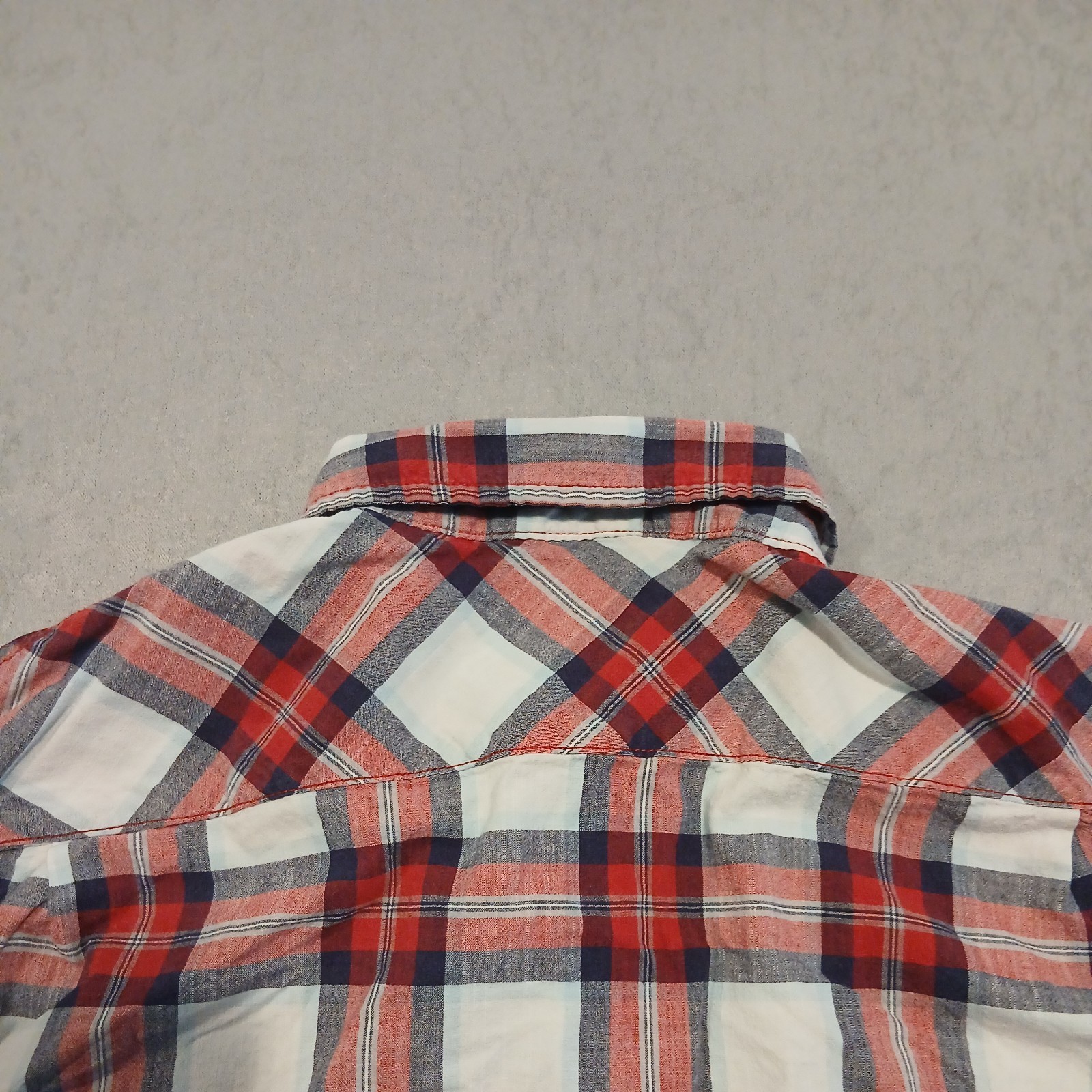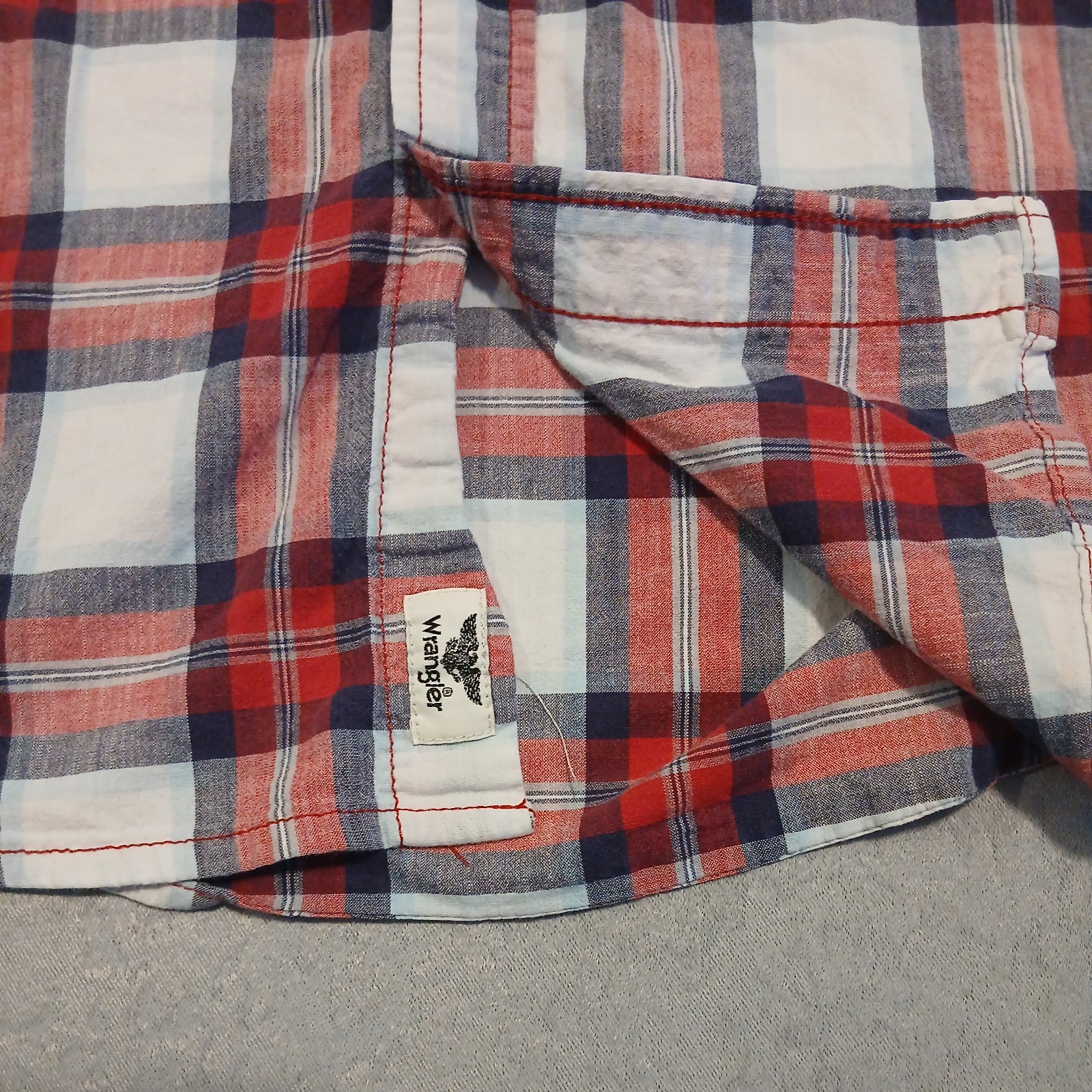 как выглядит Wrangler Mens Red White Plaid Long Sleeve Button Down Flannel Shirt Large фото