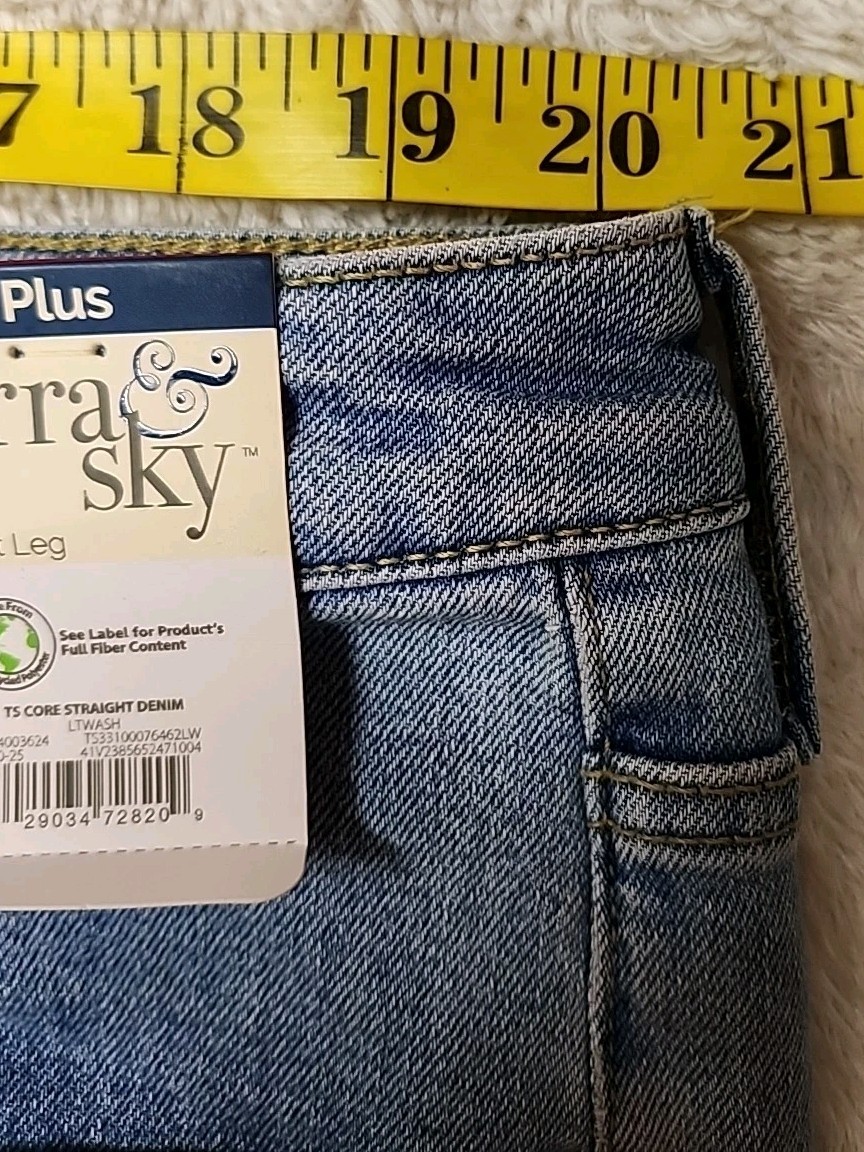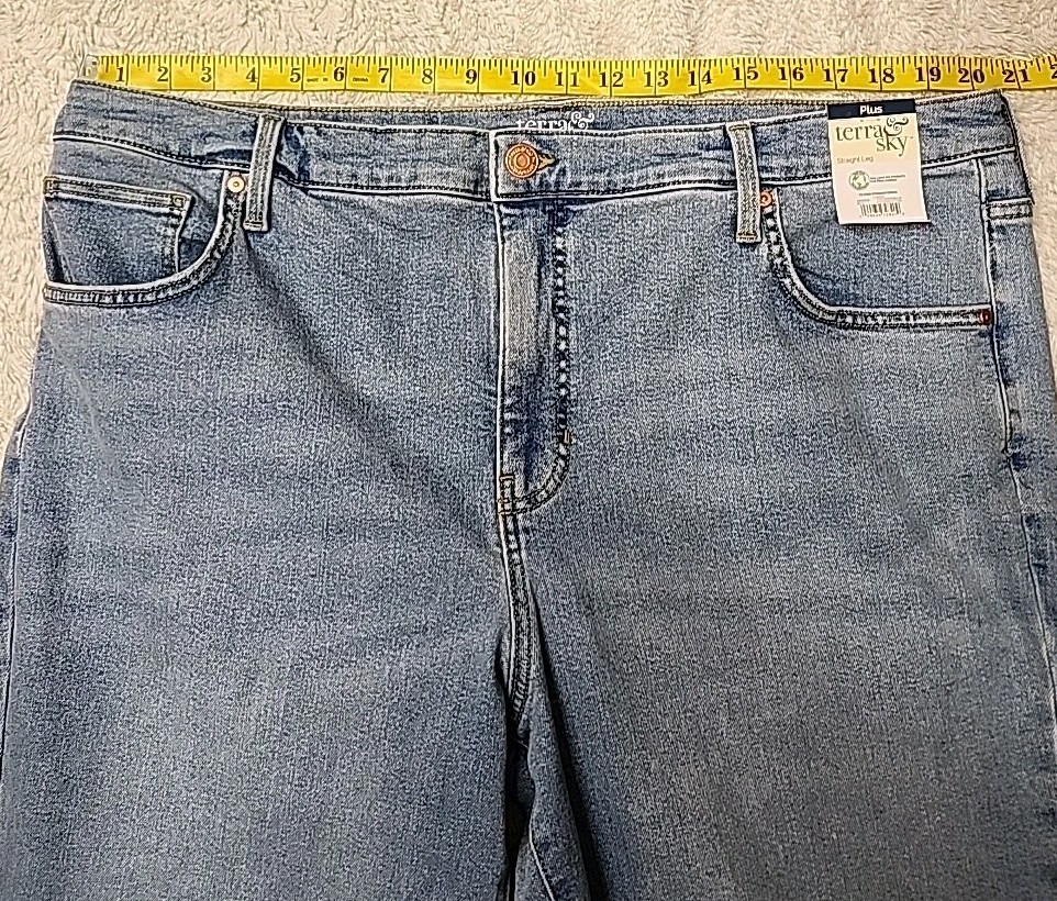 как выглядит NWT Terra Sky Womens High-Rise Straight Leg Jeans Petite Plus Size 20WP Blue фото