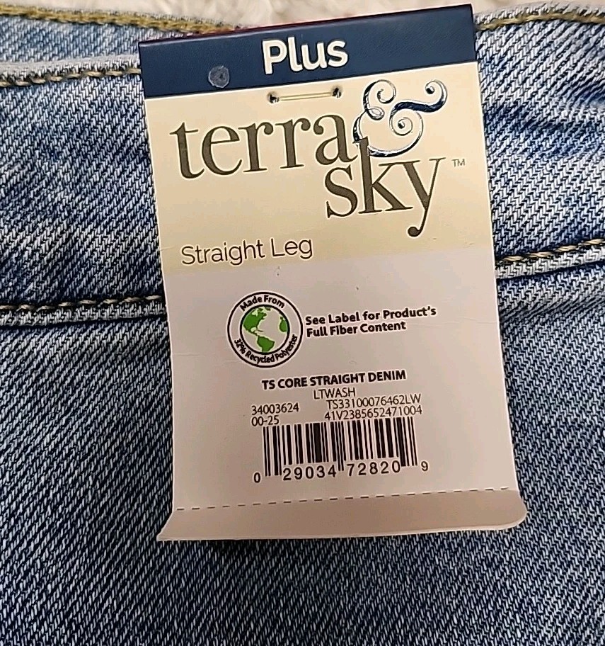 NWT Terra Sky Women's High-Rise Straight Leg Jeans Petite Plus Size 20WP Blue
