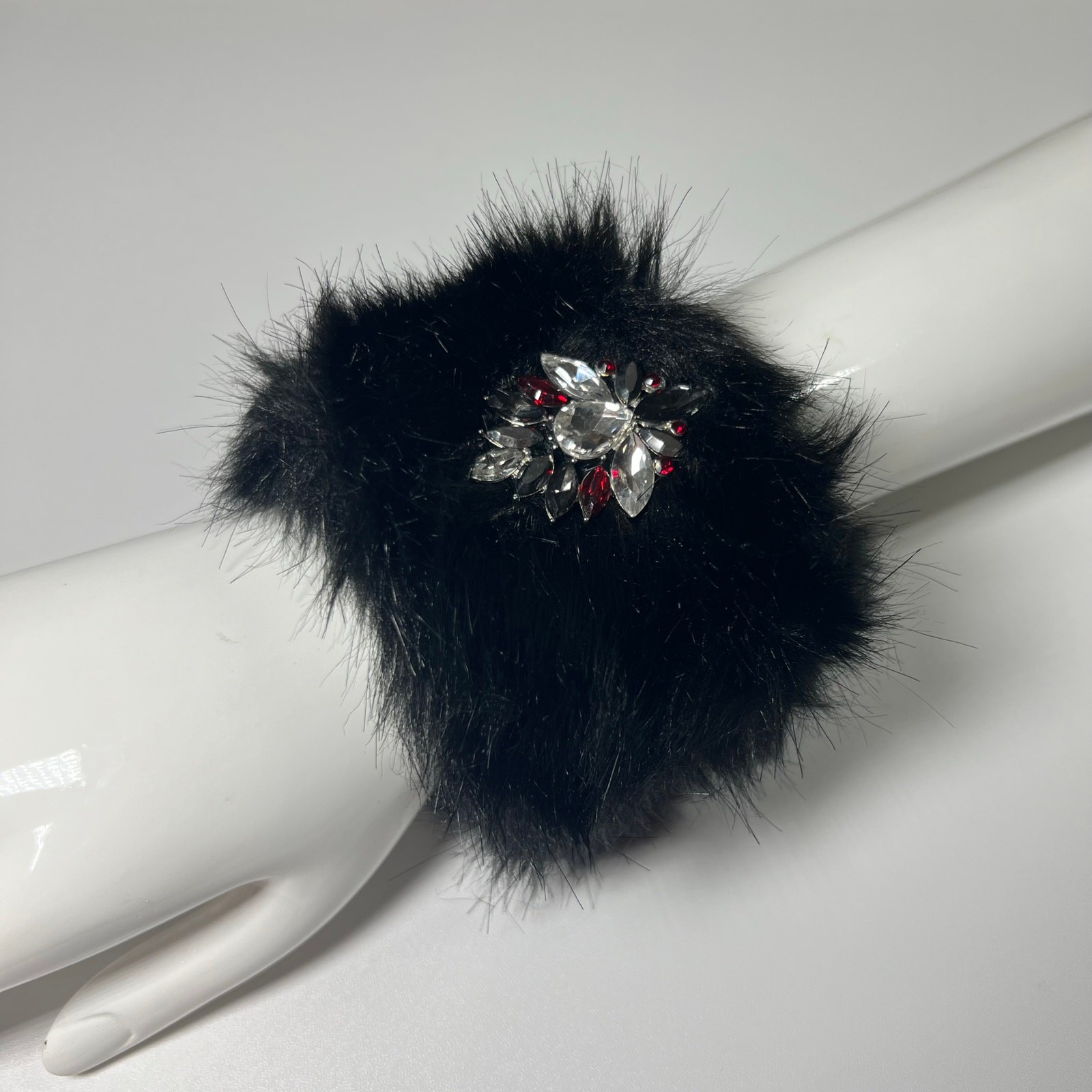 INC International Concepts Black Faux Fur Rhinestone Jewel Cuffs Wristlets New