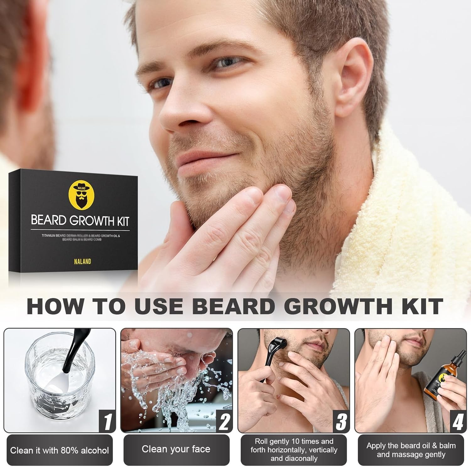 Beard Growth Kit - 2oz Oil, Conditioner Balm, and Comb for Men