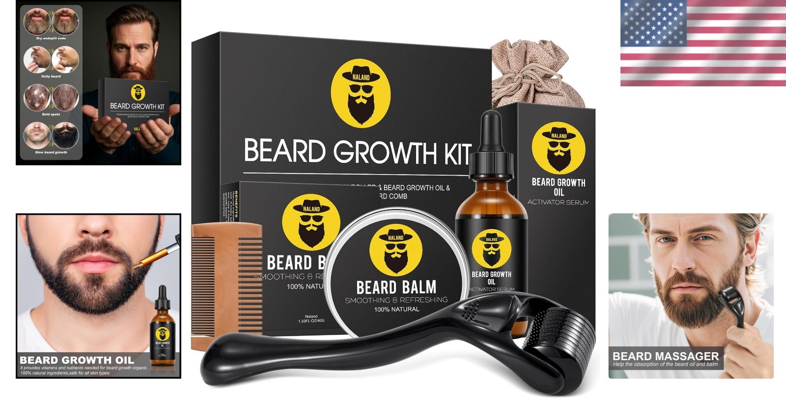 как выглядит Beard Growth Kit - 2oz Oil, Conditioner Balm, and Comb for Men фото