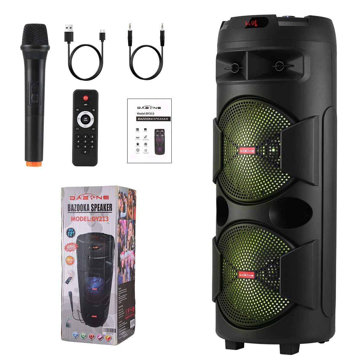 Portable Bluetooth Speaker Dual Subwoofer FM Heavy Bass Sound Karaoke W/ Lights