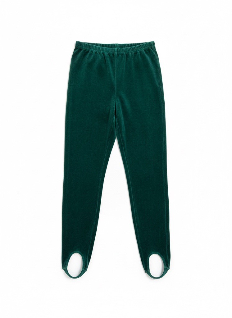 как выглядит LizSport Vtg Green Velvet Velour Pull On Stirrup Pants Stretch Sz S Retro фото