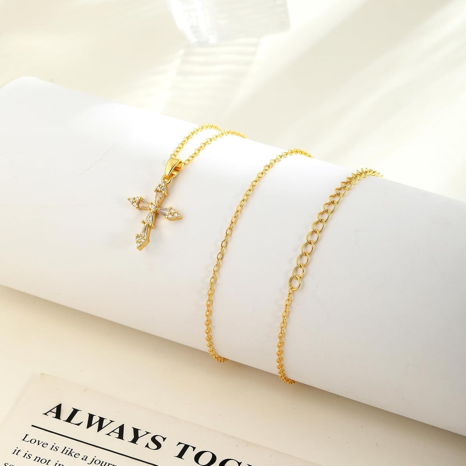 Cross Necklace for Women, 14K Gold Silver Plated Dainty Small Cubic Zirconia ...