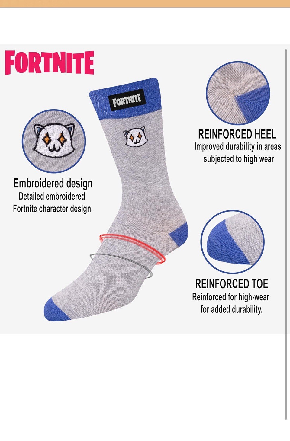 как выглядит FORTNITE Fun: 6-Pack High Socks for Boys and Teens Size 3-9 фото