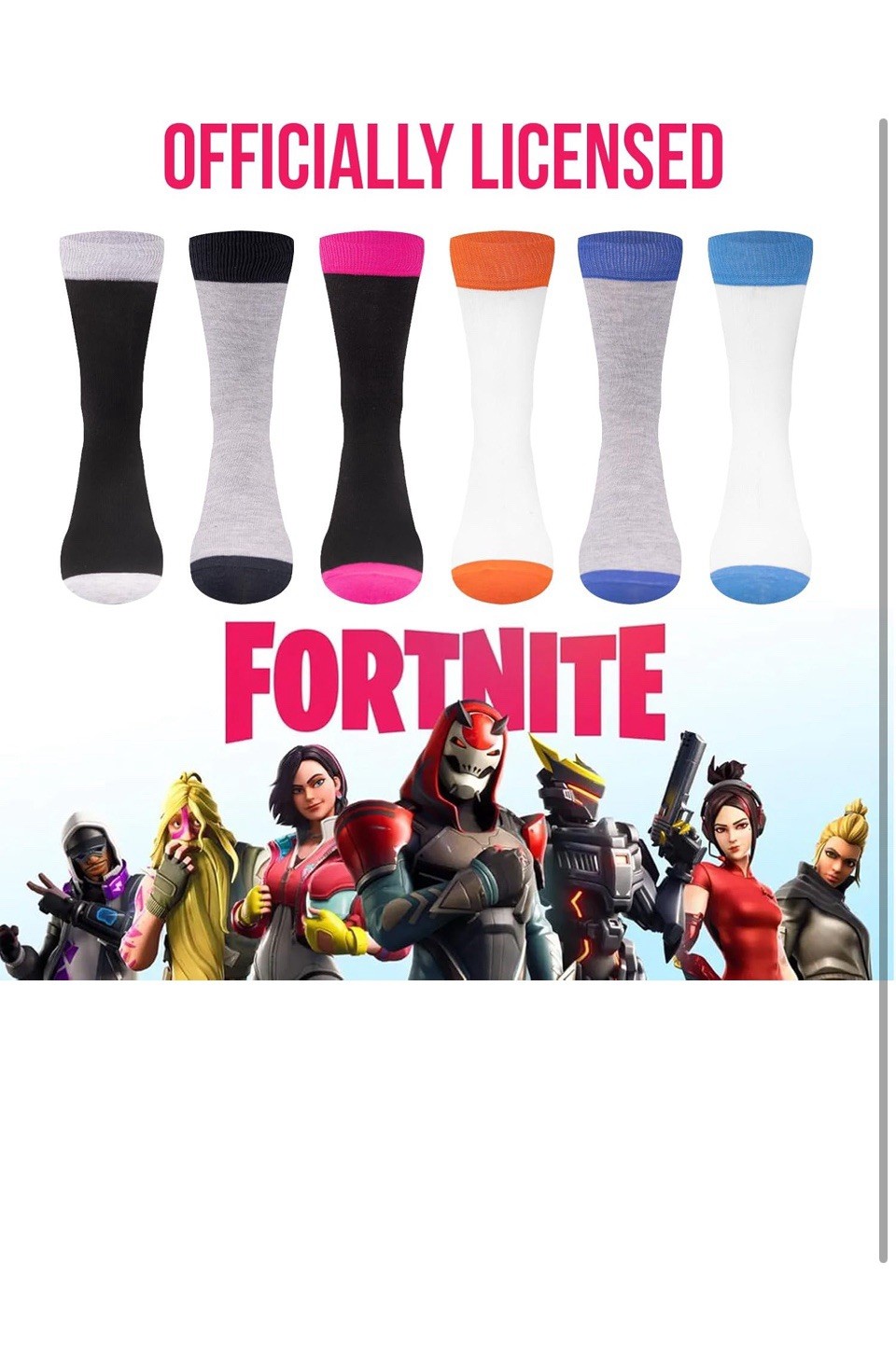 FORTNITE Fun: 6-Pack High Socks for Boys and Teens Size 3-9
