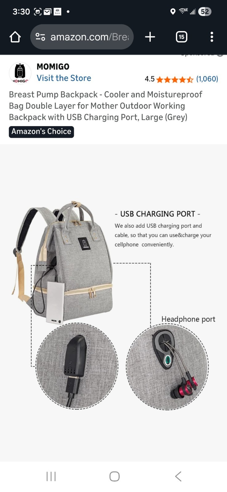 как выглядит Momigo Backpack For Breastfeeding Mom with USB Charging Port фото